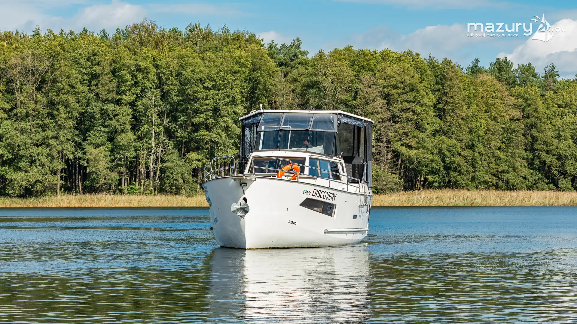W zależności od konfiguracji jednostka oferuje dwie lub trzy zamykane kabiny dwuosobowe, przestronną mesę z aneksem kuchennym oraz jedną lub dwie łazienki z pełnowymiarowym węzłem sanitarnym. Duże przeszklenia poprawiają doświetlenie wnętrza i wzmacniają wrażenie otwartej przestrzeni. Górny pokład (flybridge) stanowi dodatkową strefę wypoczynku i punkt widokowy, który w warunkach mazurskich czy śródlądowych znacząco podnosi atrakcyjność jednostki.