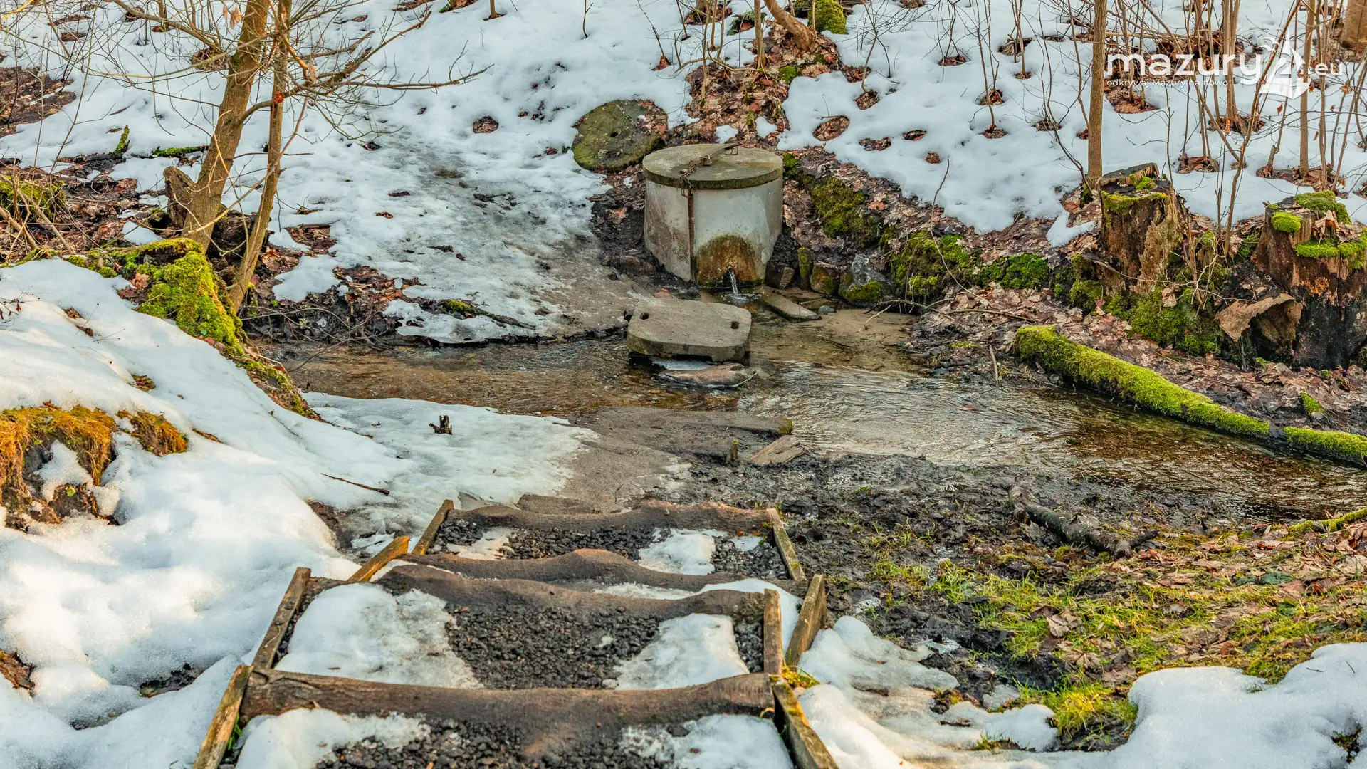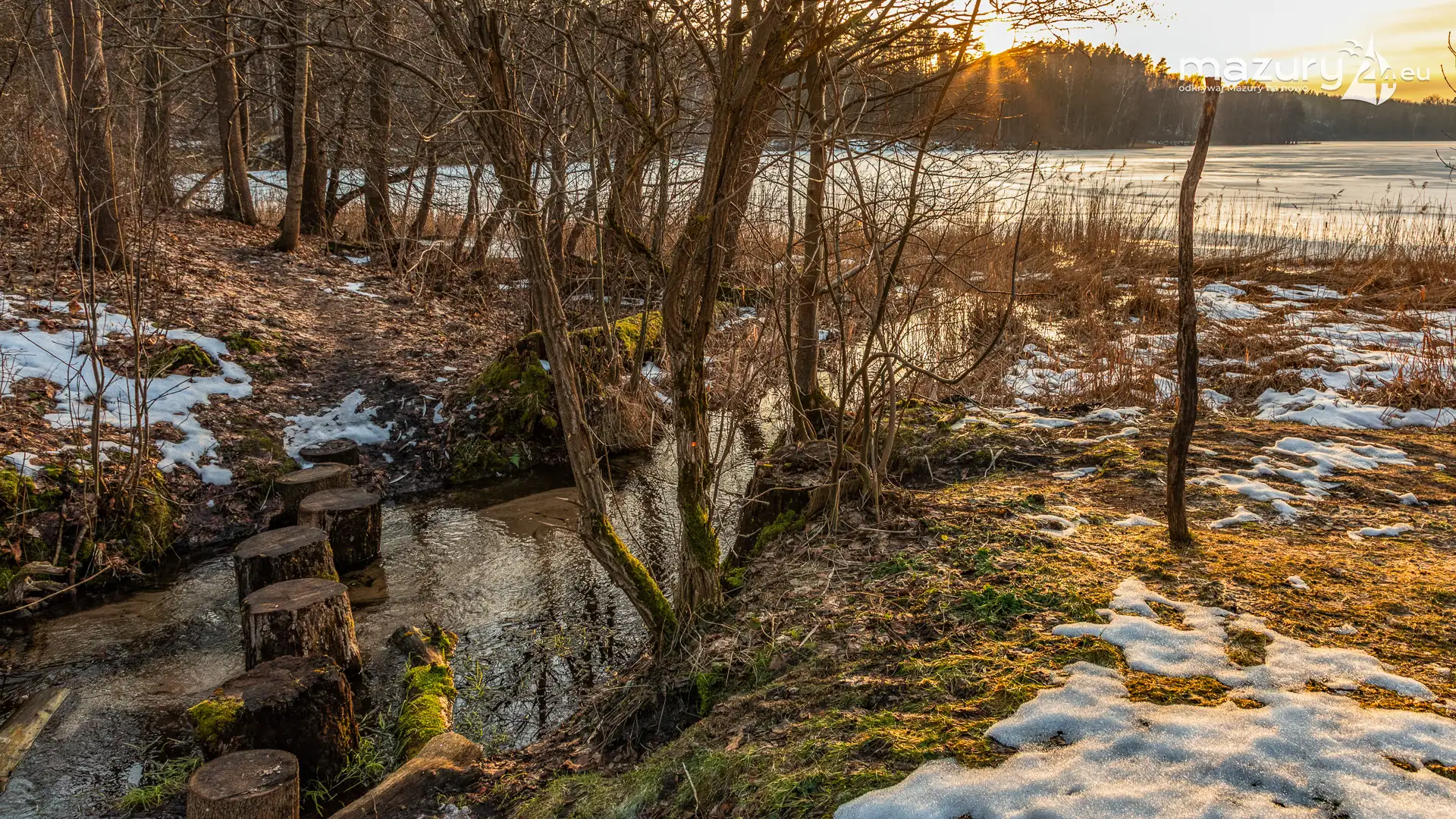 Kilka dni temu dotarliśmy nad jezioro Ublik Mały. To właśnie na jego wschodnim brzegu wybija źródełko czystej wody, z którego chętnie korzystają turyści podczas pobytu nad akwenem. Zachodzące słońce pięknie pokolorowało resztki zimy w postaci lodu na jeziorze. Mazury powoli wracają w barwach, które kochamy najbardziej.