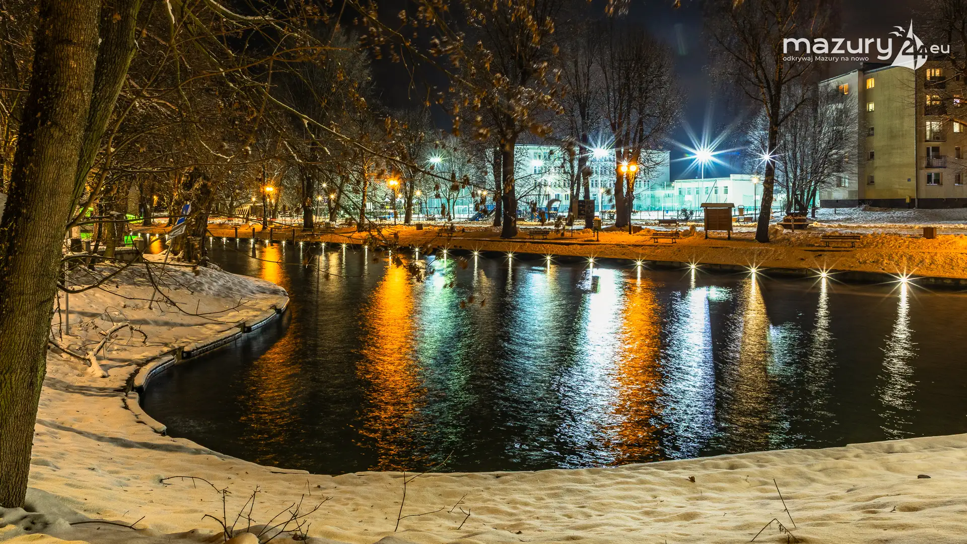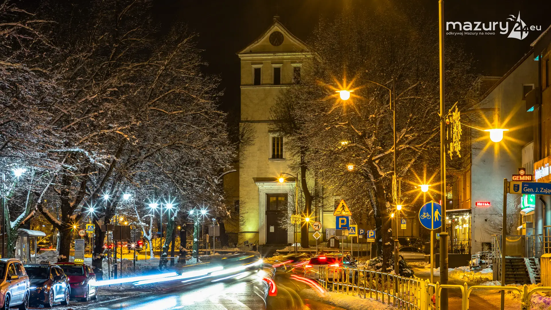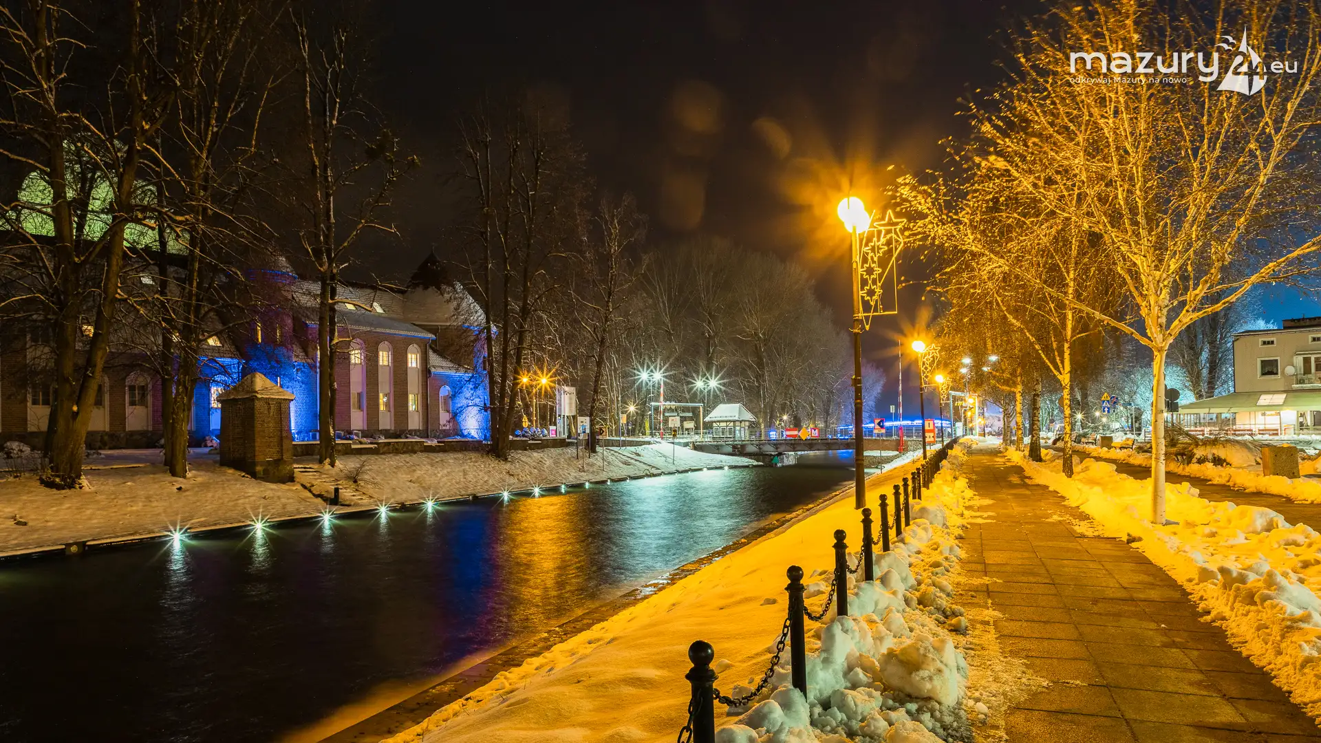 Kilka dni temu, Mazury w ciągu jednej nocy przeszły z trybu jesiennego na zimowy. Mimo pięknej wszechobecnej bieli nie możemy doczekać się słońca. Stąd pomysł na poszukanie kolorów nocą. Zapraszamy na krótki, wieczorny spacer po Giżycku...