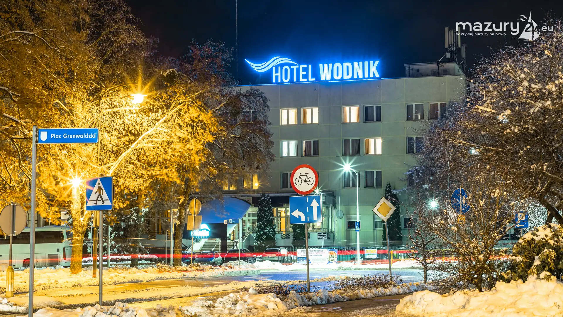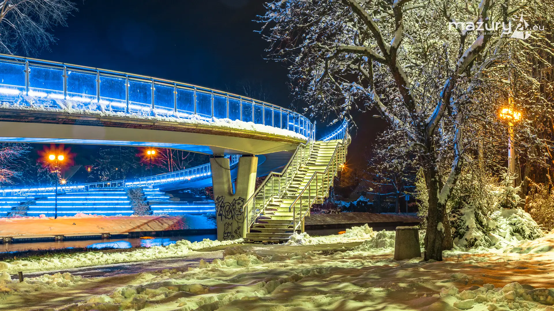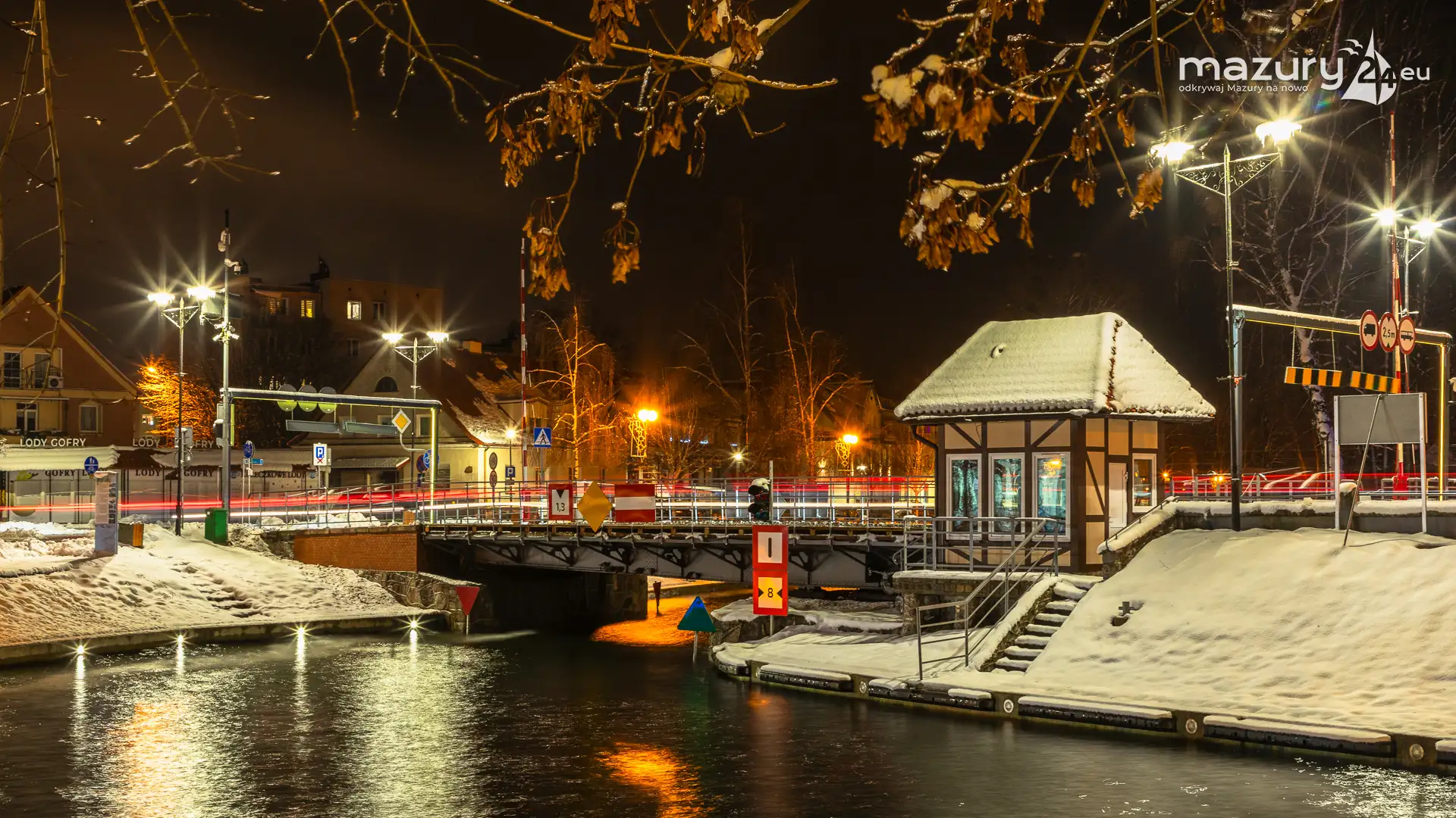Kilka dni temu, Mazury w ciągu jednej nocy przeszły z trybu jesiennego na zimowy. Mimo pięknej wszechobecnej bieli nie możemy doczekać się słońca. Stąd pomysł na poszukanie kolorów nocą. Zapraszamy na krótki, wieczorny spacer po Giżycku...