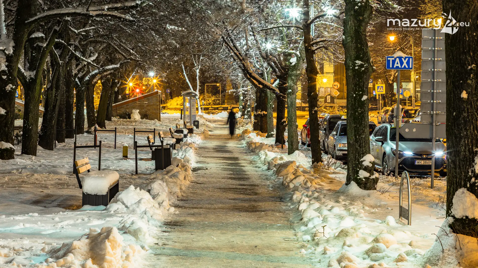 Nocne i zaśnieżone Giżycko, listopad 2025 r.