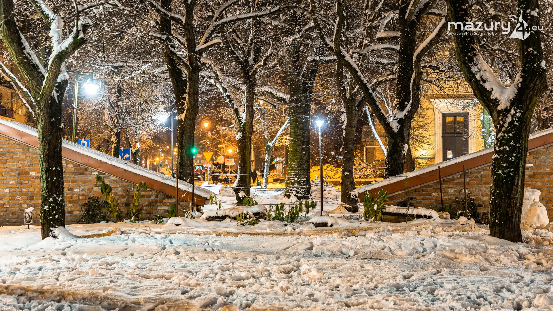 Nocne i zaśnieżone Giżycko, listopad 2025 r. - zdjęcie 2
