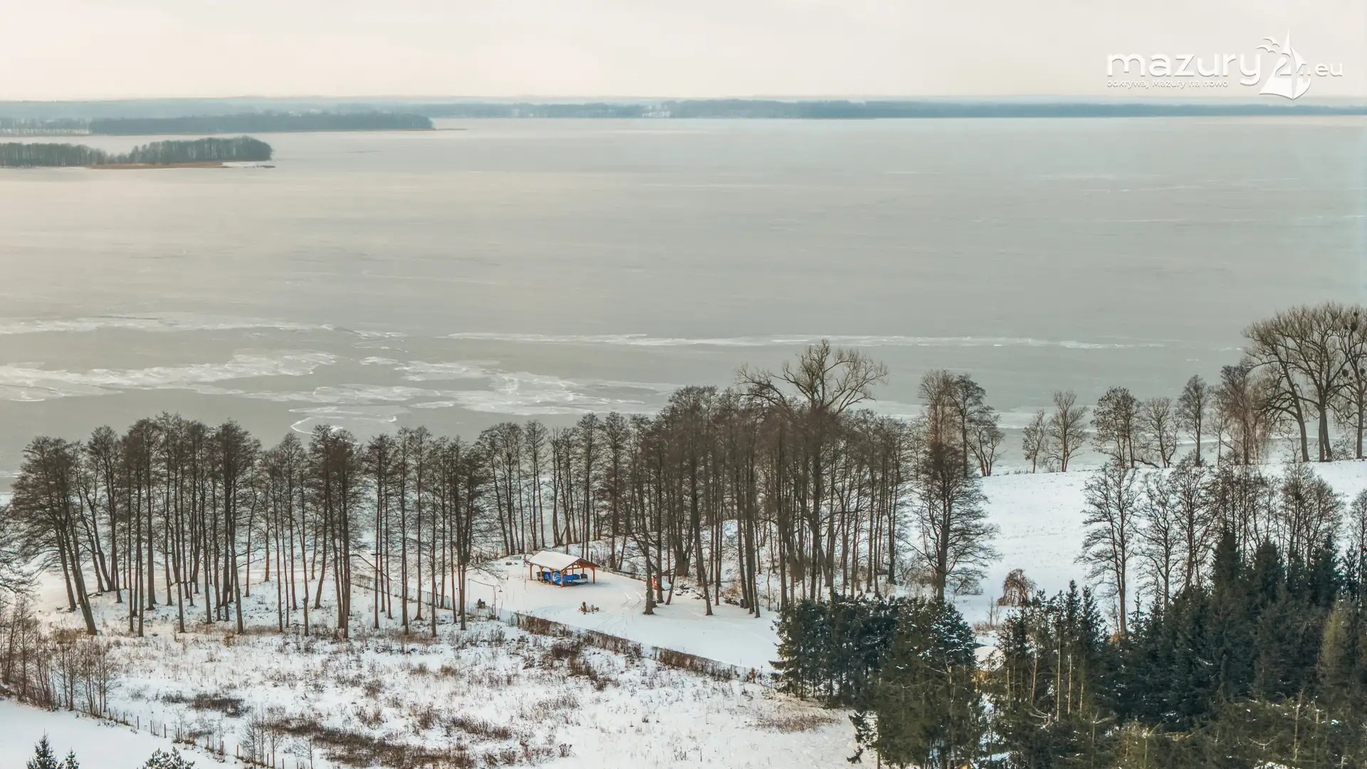 Niegocin skuty lodem w okowach zimowych mgieł, styczeń 2026