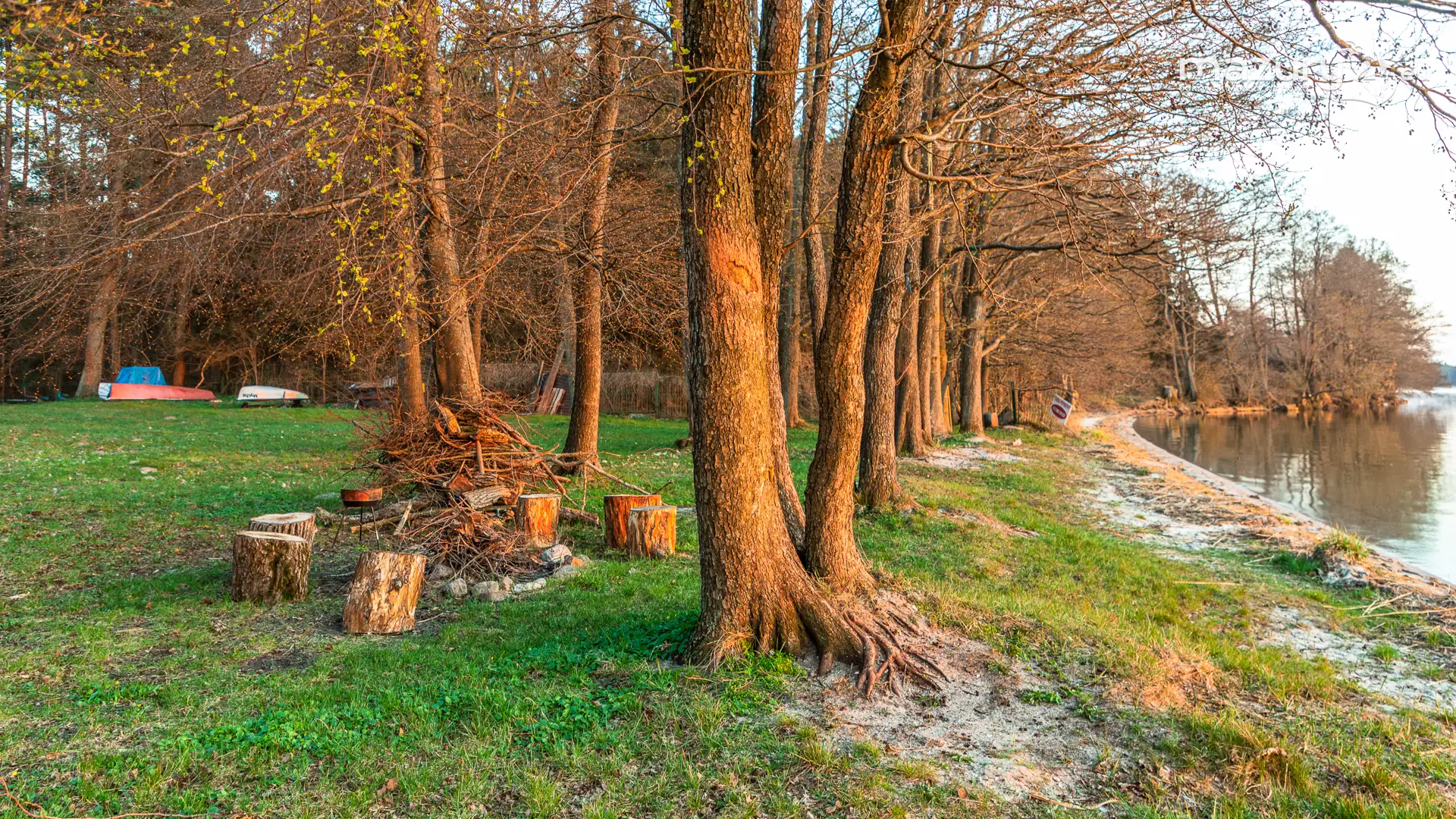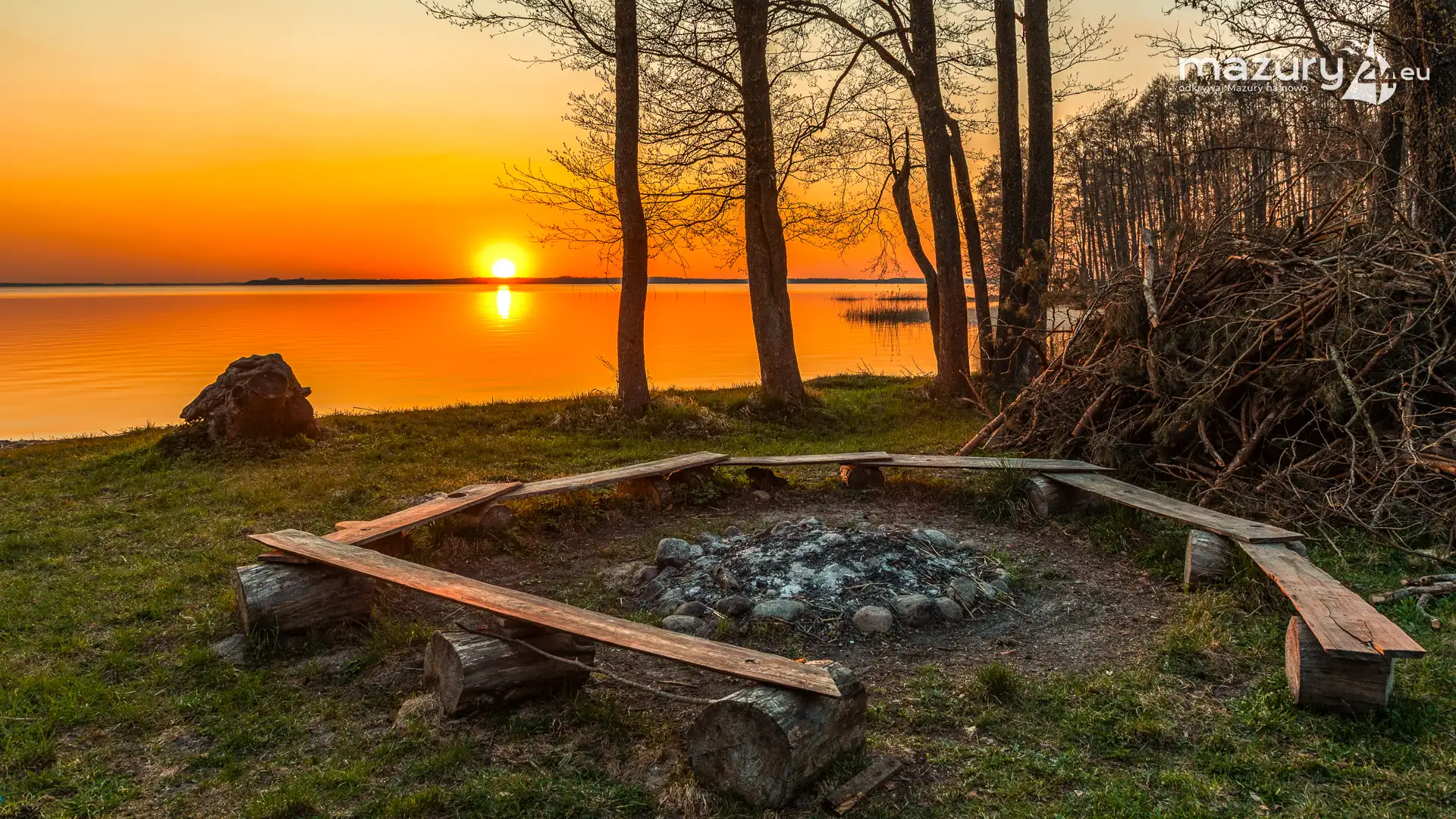Końcówka dnia na kempingu (kiedyś Suny Camp) nad jeziorem Dargin zaskoczyła nas majestatycznym zachodem słońca. Jeszcze bez dymu z ognisk i żaglówek pospiesznie płynących do portów, jeszcze z dość niską temperaturą. Natura przyspiesza i za 2-3 tygodnie Mazury zaleje zieleń i temperatury powyżej 20 stopni. Wtedy się zacznie...