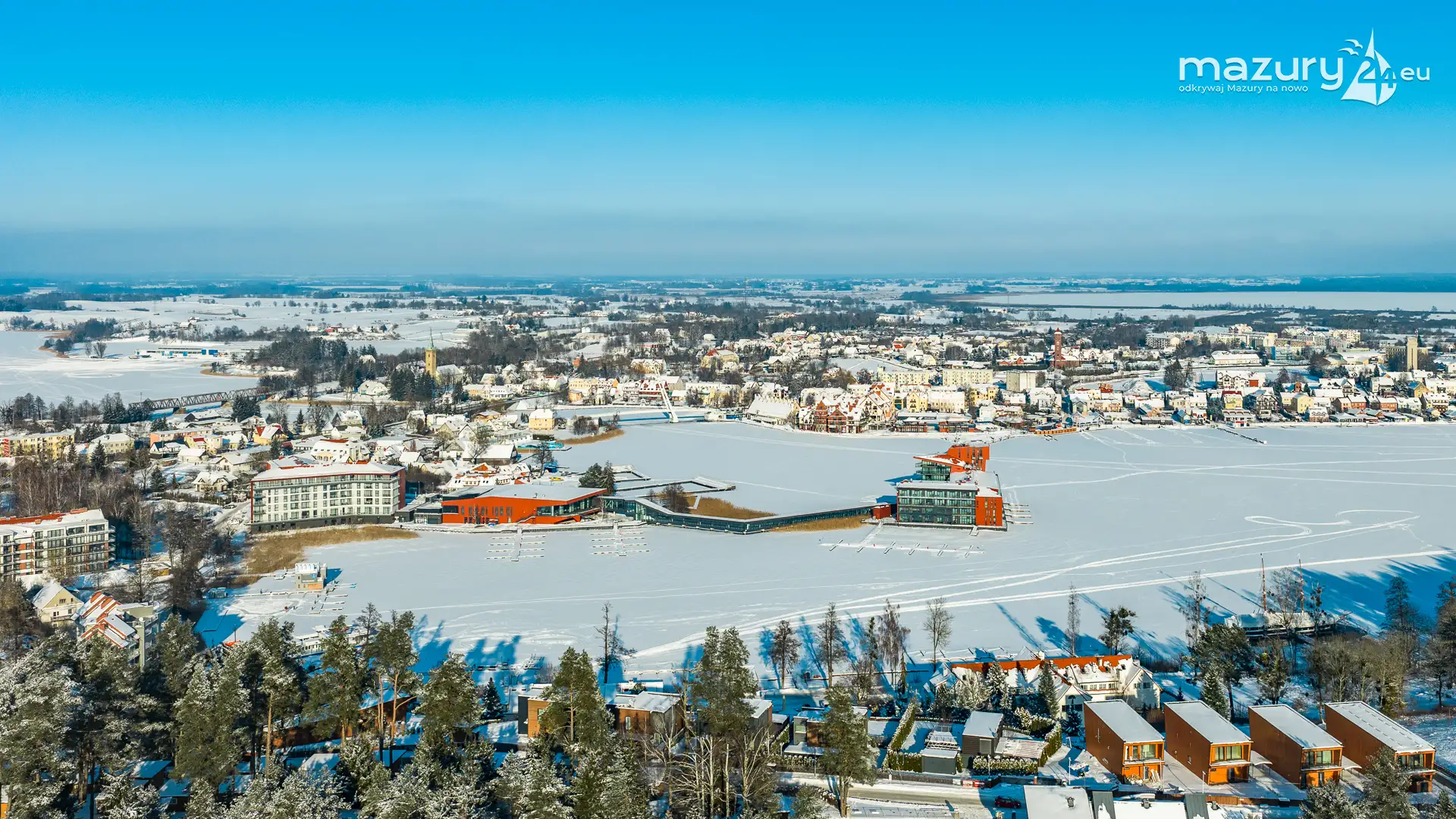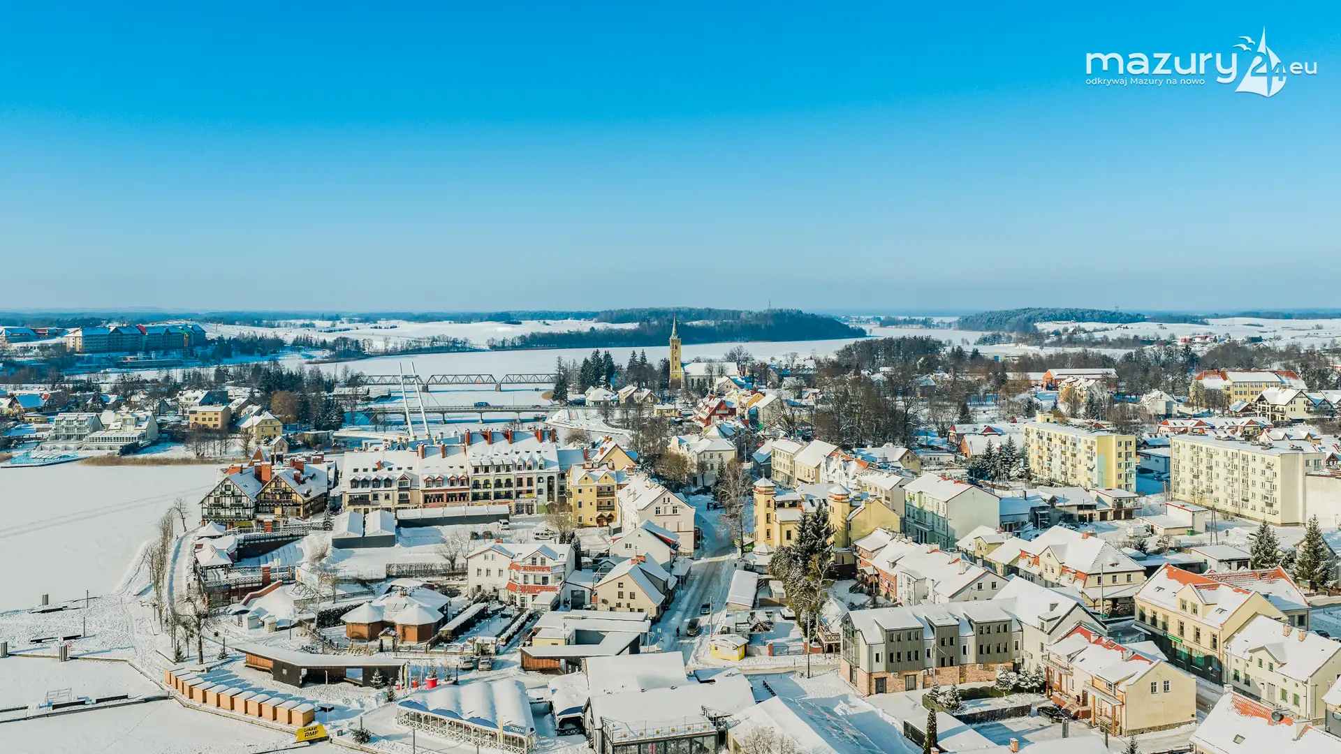 Kolejna paczka zdjęć powstałych przy wykonywaniu panoram 360 z lotu ptaka, przedstawia Mikołajki i jezioro Mikołajskie, most Sztynorcki, Nowe Guty i jezioro Śniardwy, jezioro Nidzkie oraz Pierkunowo i jezioro Kisajno. Mimo pięknej zimy - tej Pani już dziękujemy i czekamy na wiosnę :)