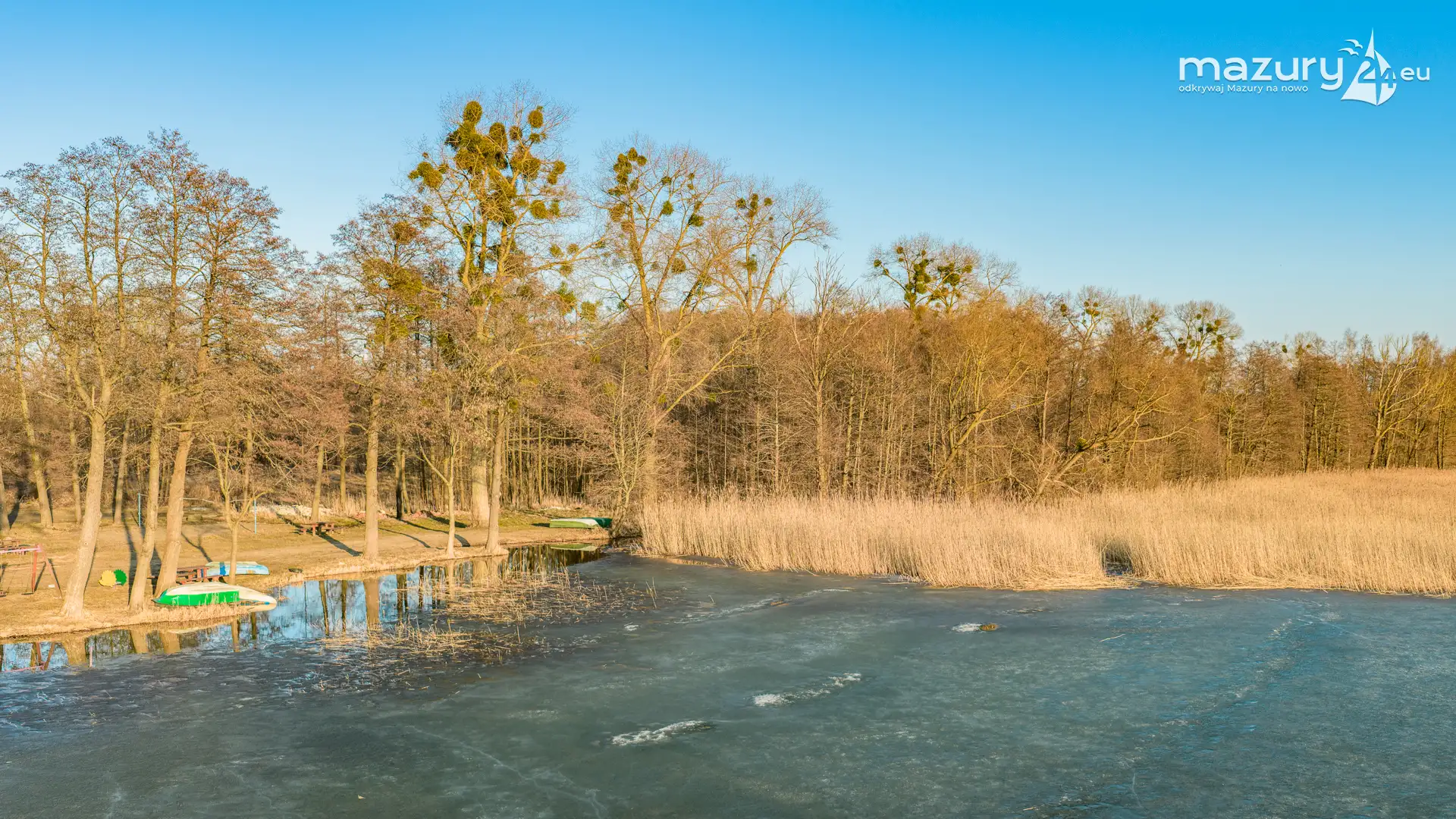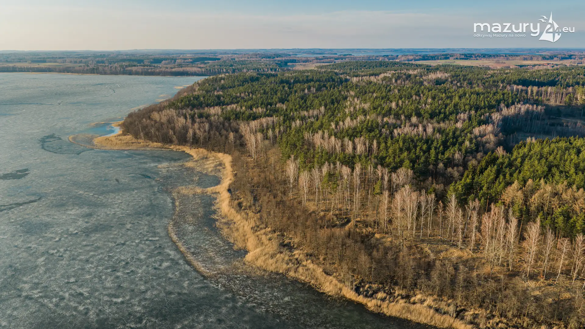 Kolejna odsłona przedwiośnia z drona to widoki na jeziora Dejguny i Dejgunek w okolicach wsi Bogacko. Barwy i rosnąca temperatura nieuchronnie przybliżają nas do lata. Jedynie lód zalegający na tafli jezior przełamuje ten sielankowy obraz u progu wiosny. Nie zmienimy jednak rytmu natury — i może właśnie dlatego możemy dziś zachwycać się Mazurami w ich jeszcze surowym, przed wiosennym wydaniu.