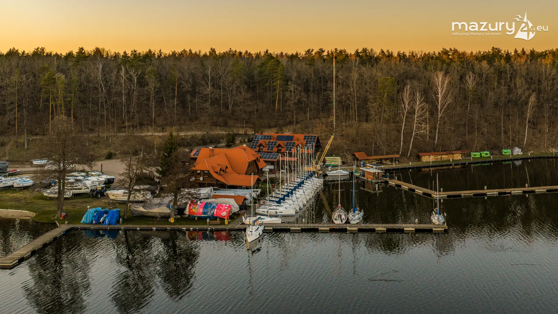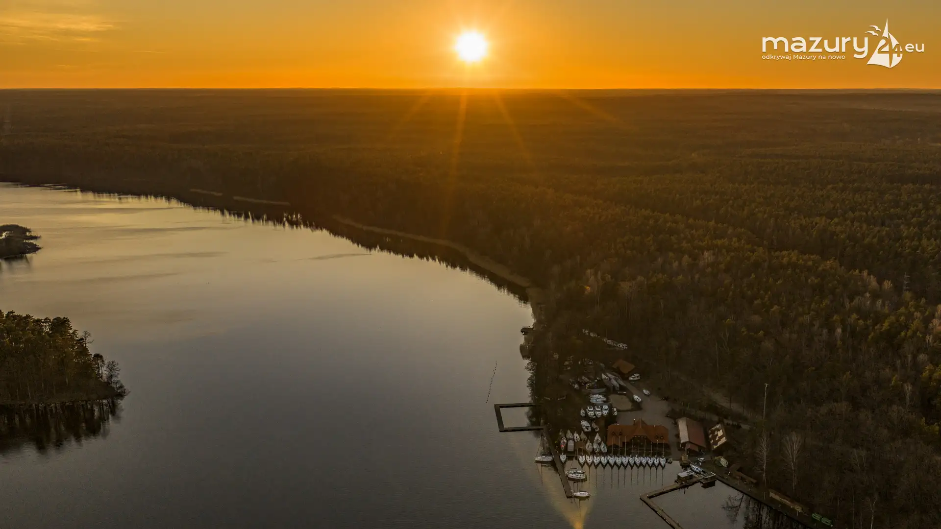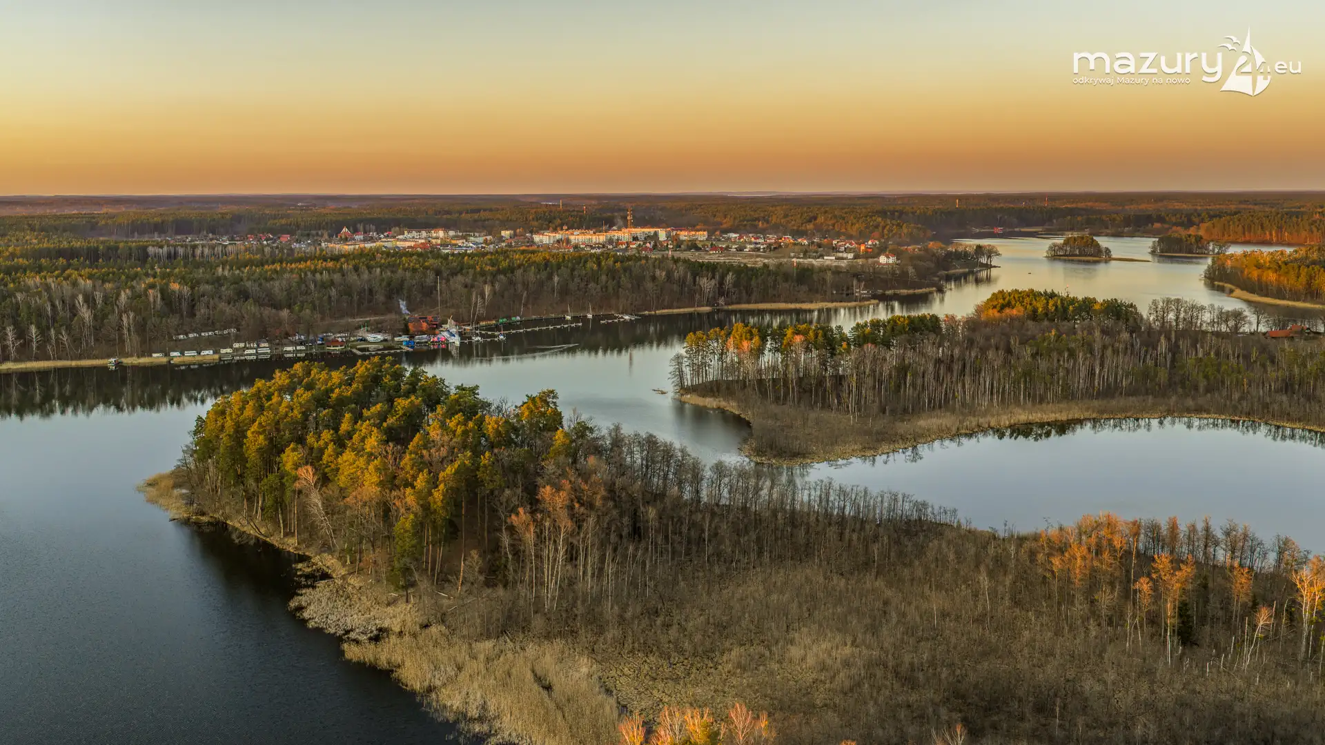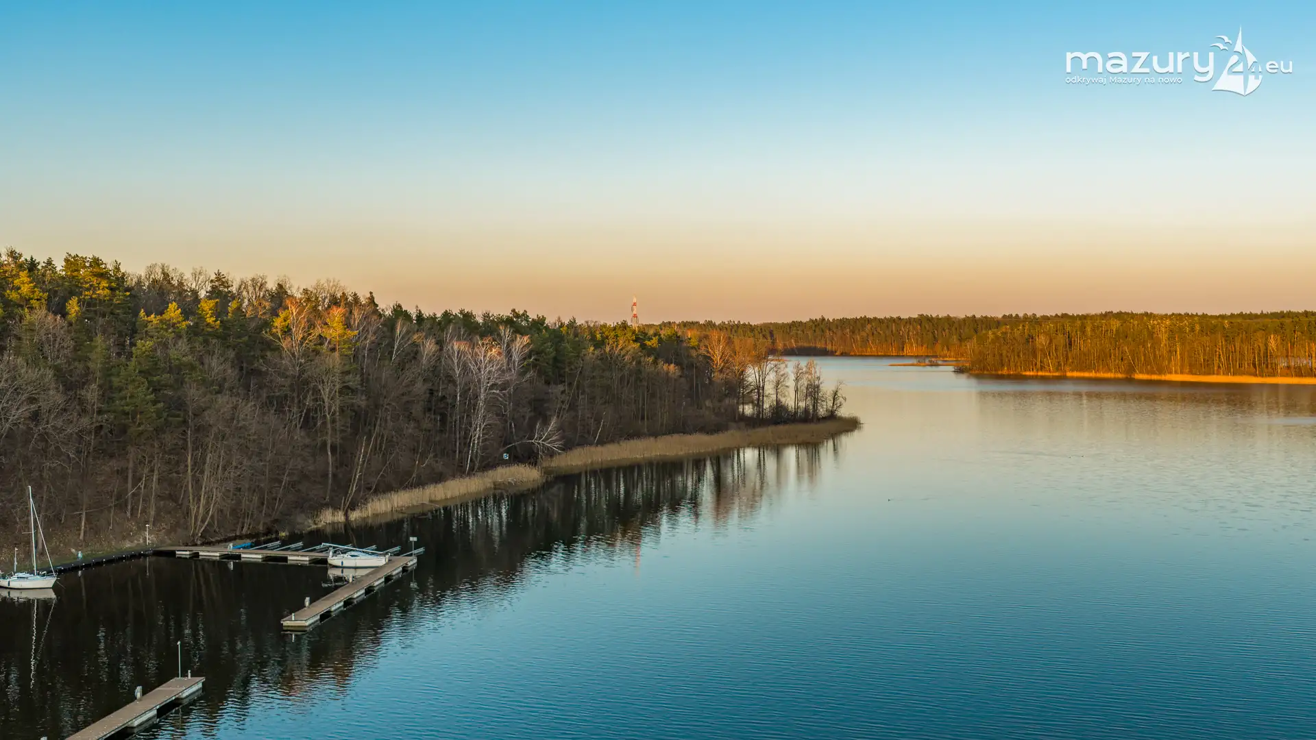 Kwiecień przywitał nas słoneczną, choć wciąż lekko chłodną aurą. Wznieśliśmy się nad port Pod Dębem nad jeziorem Nidzkim w Rucianem-Nidzie, by sprawdzić, czy wody jeziora zostały już uwolnione z zimowego lodu. Wszystko wskazuje na to, że sezon powoli się rozpoczyna — pierwsze jachty pojawiły się już na wodzie, a na horyzoncie rozegrał się niezwykły spektakl zachodzącego słońca. Barwy nieba coraz bardziej przypominają te, które znamy z pełni lata. Zobaczcie sami…