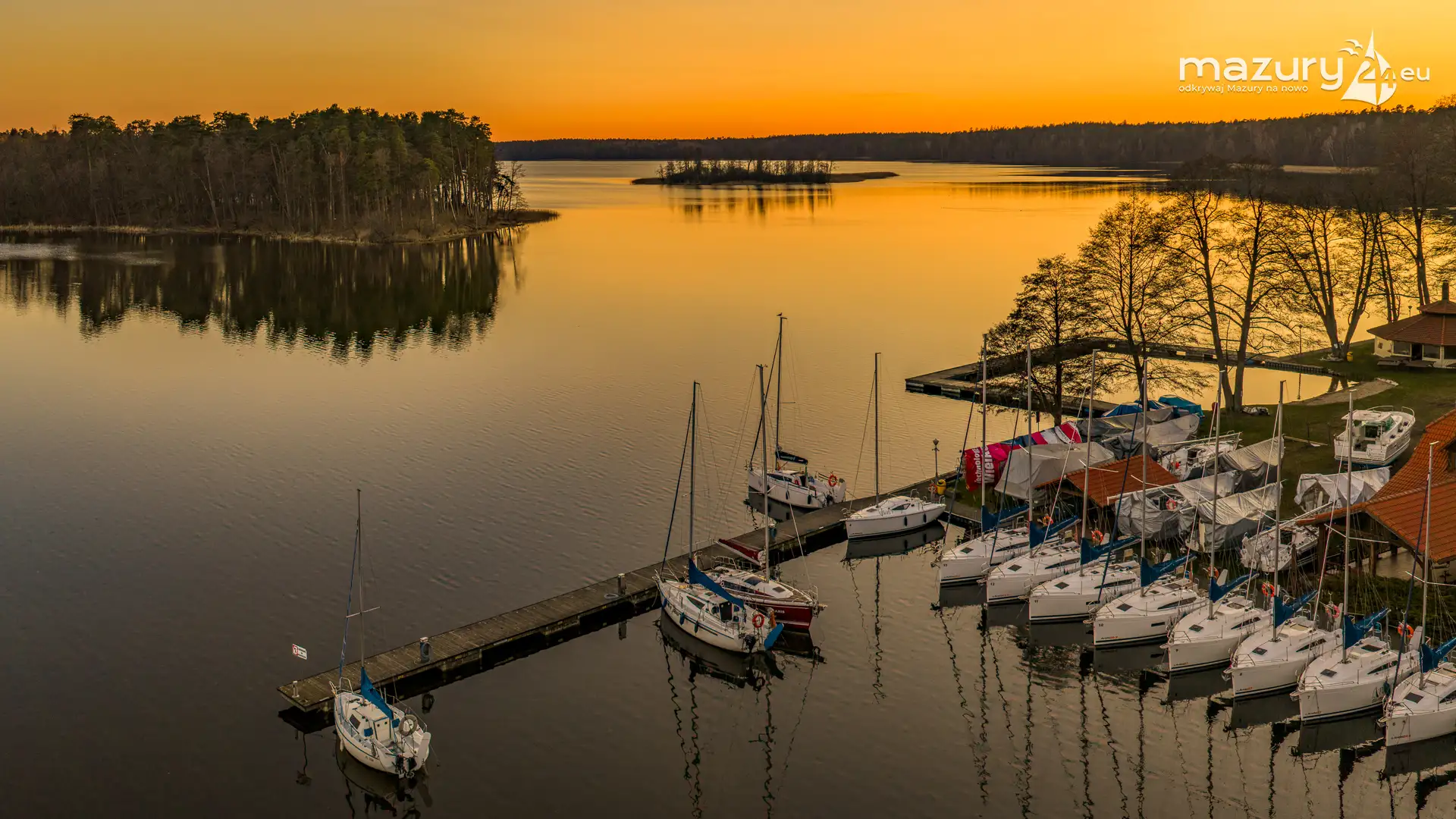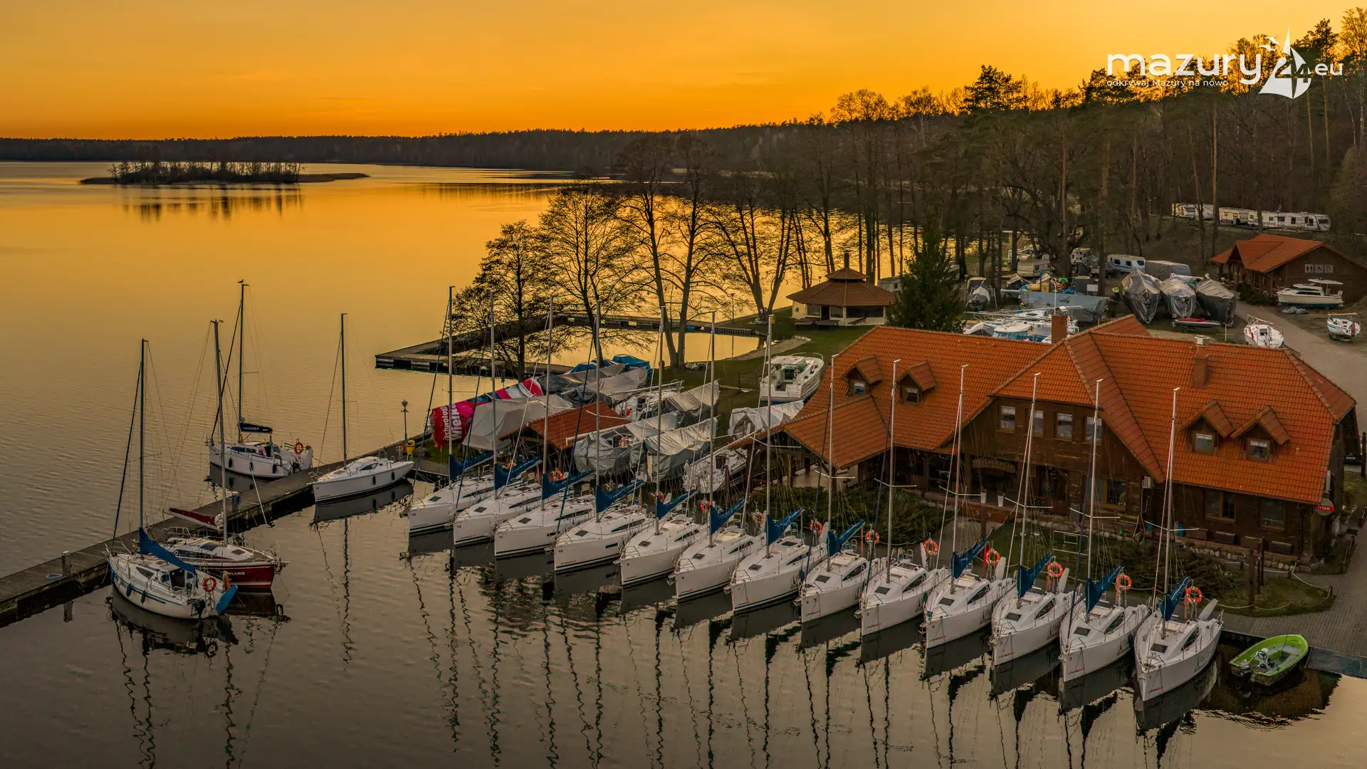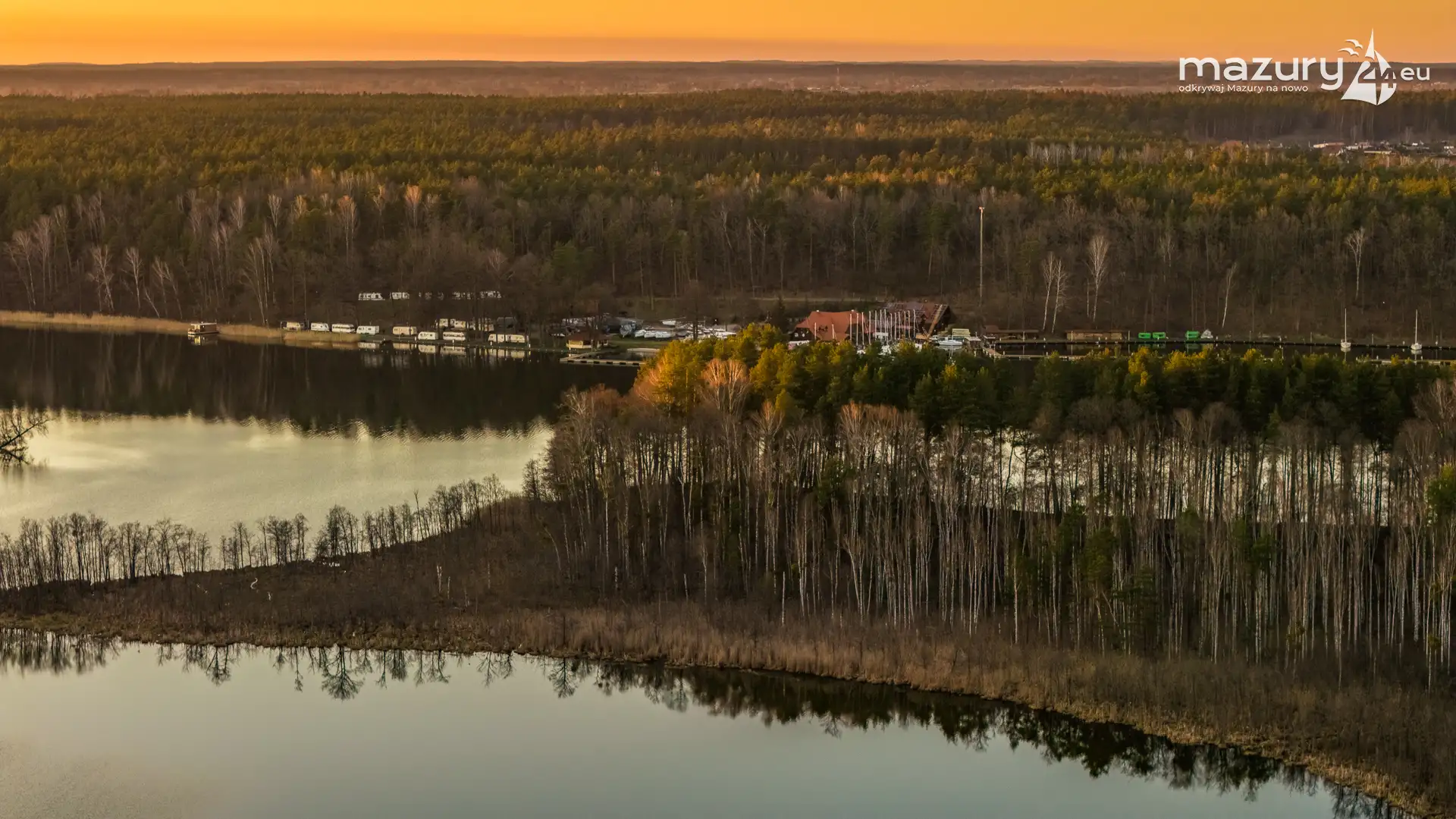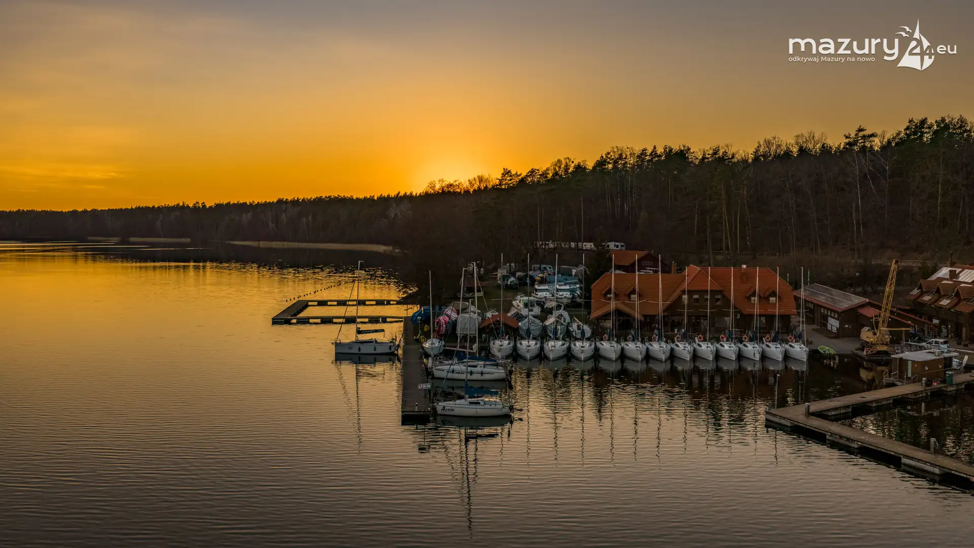 Kwiecień przywitał nas słoneczną, choć wciąż lekko chłodną aurą. Wznieśliśmy się nad port Pod Dębem nad jeziorem Nidzkim w Rucianem-Nidzie, by sprawdzić, czy wody jeziora zostały już uwolnione z zimowego lodu. Wszystko wskazuje na to, że sezon powoli się rozpoczyna — pierwsze jachty pojawiły się już na wodzie, a na horyzoncie rozegrał się niezwykły spektakl zachodzącego słońca. Barwy nieba coraz bardziej przypominają te, które znamy z pełni lata. Zobaczcie sami…