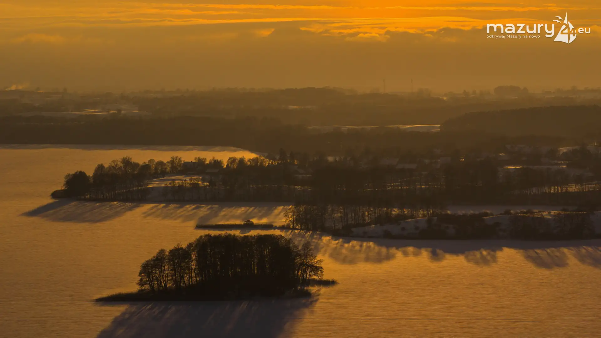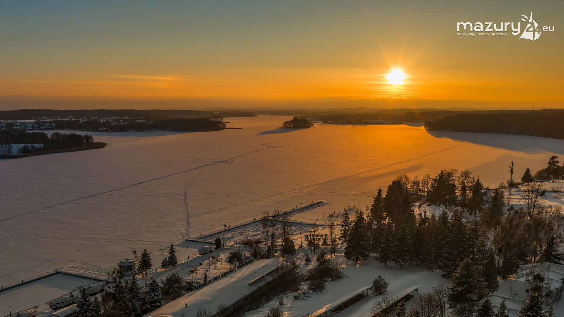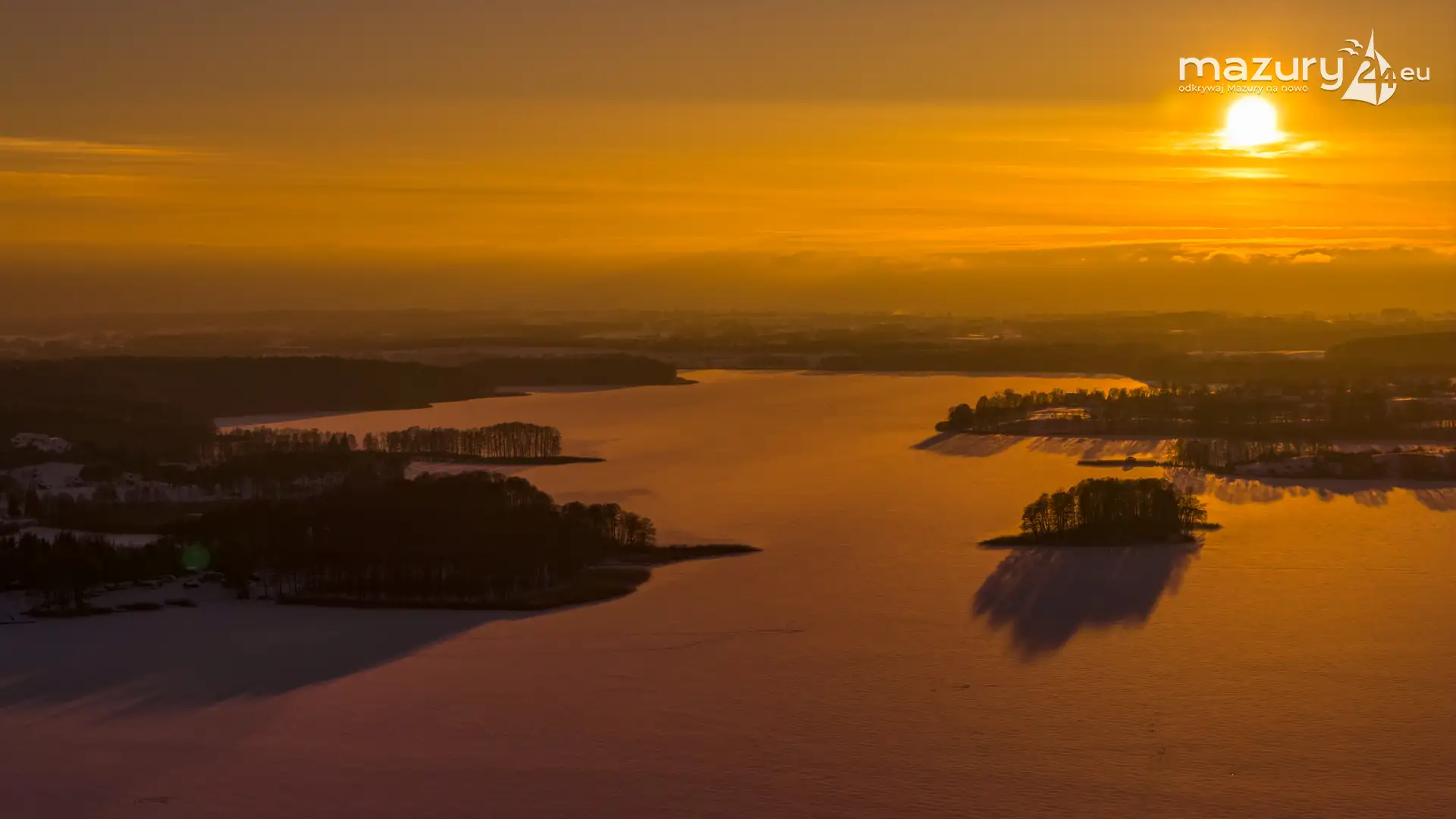 Zachód słońca nad jeziorem Ryńskim z drona, luty 2026 r. - zdjęcie 24