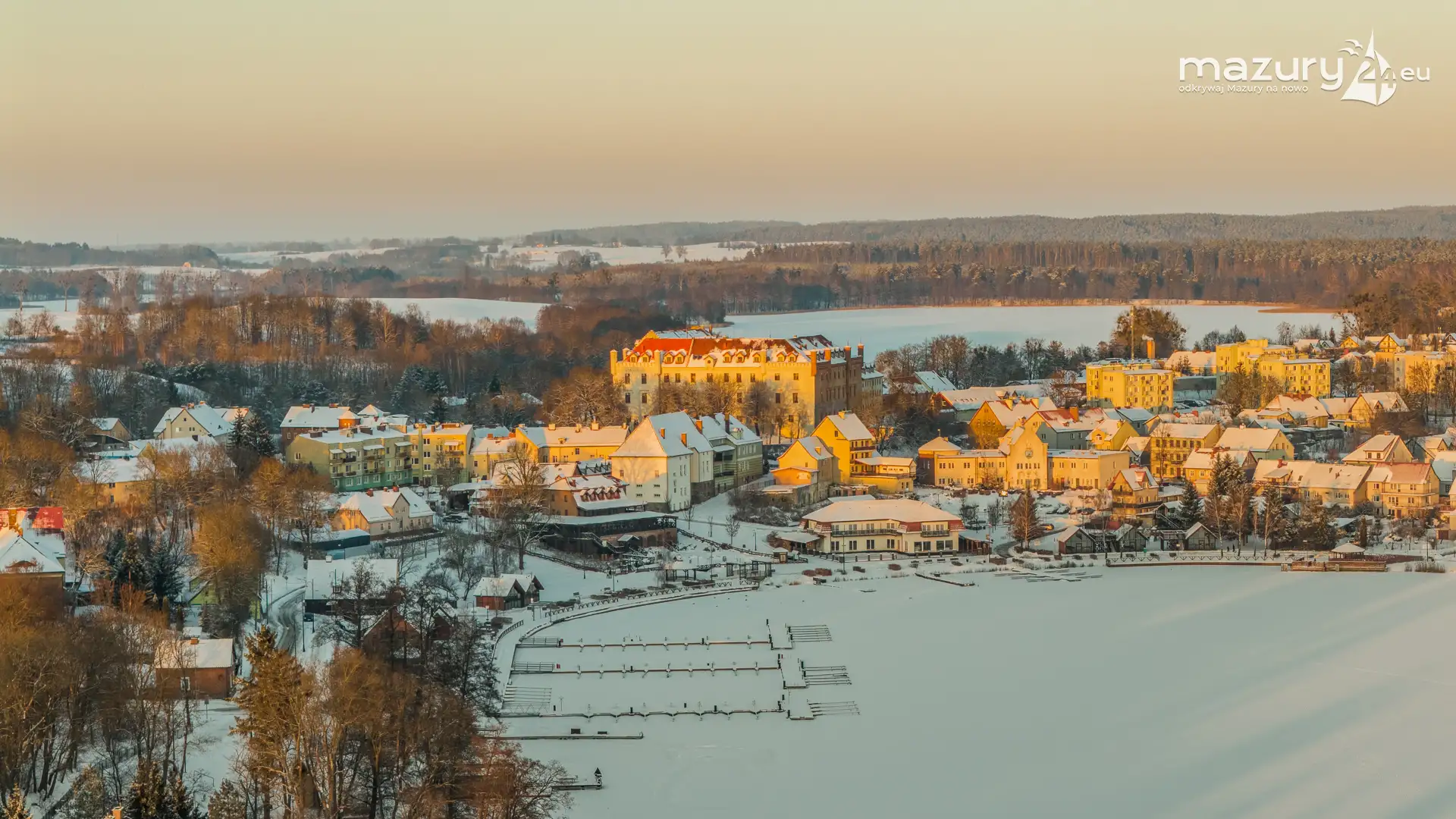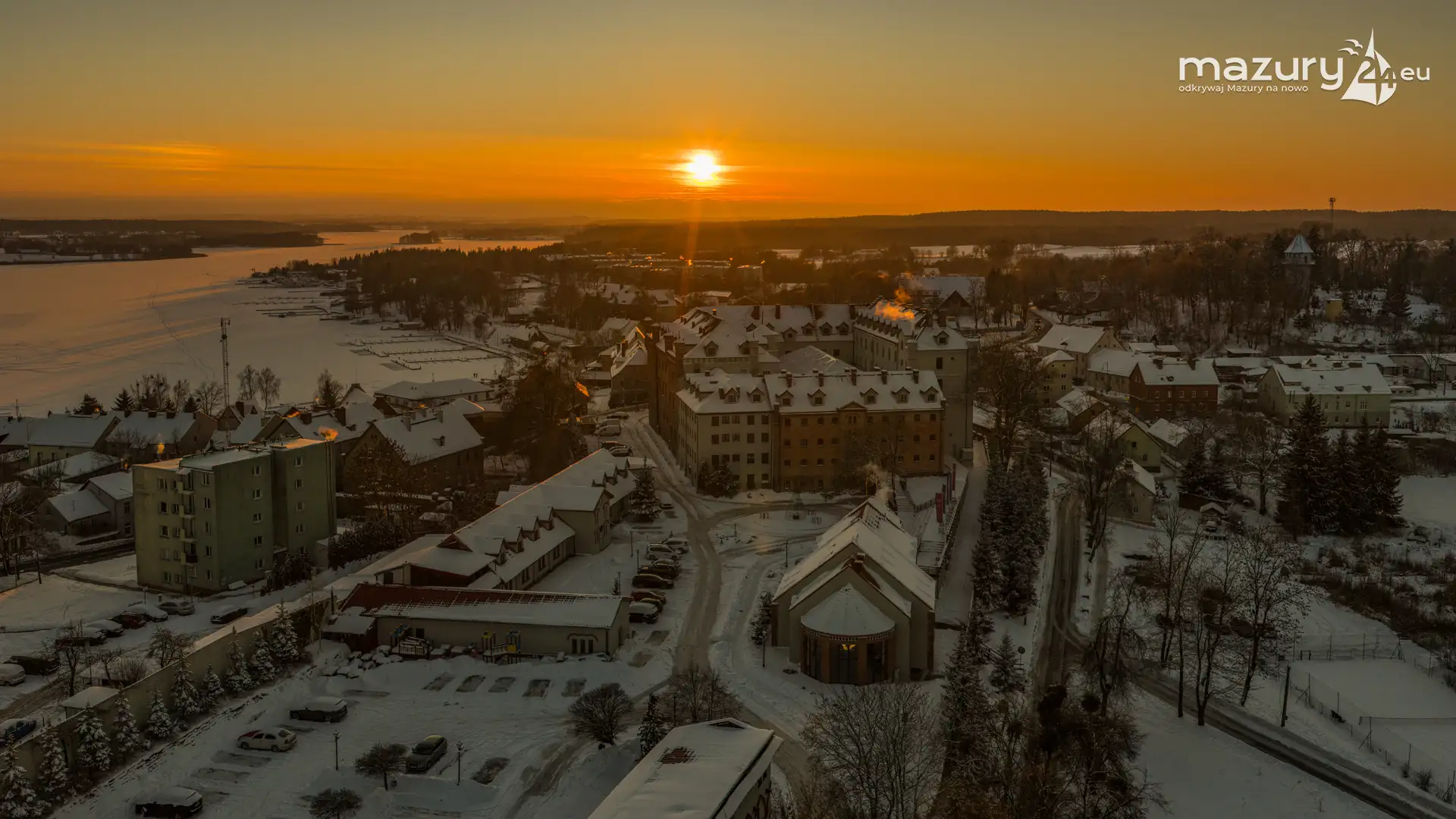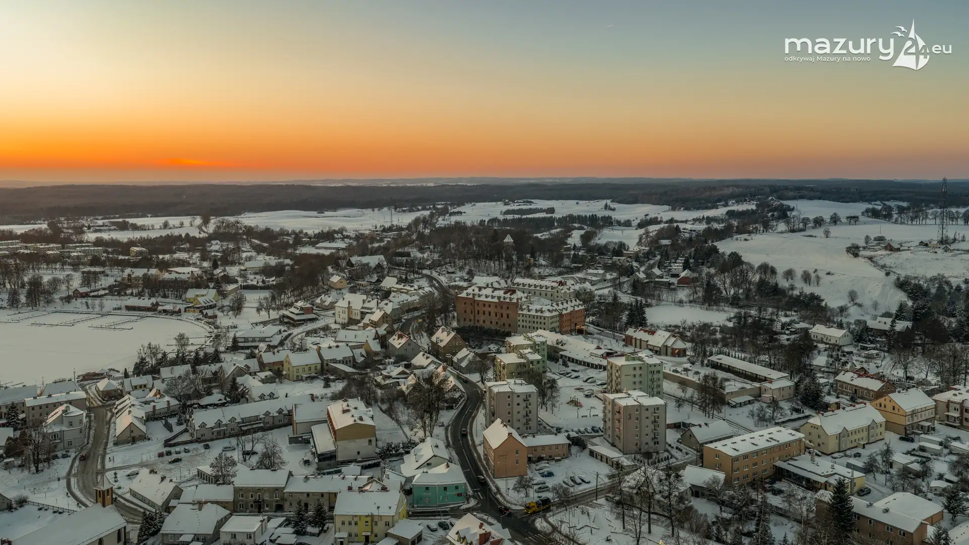Kilka dni temu udaliśmy się na zdjęcia zachodu słońca do Mikołajek, ale przed samą miejscowością pojawiła się kurtyna z chmur. Cofnęliśmy się do Rynu... a tam piękny, bajkowy, słoneczny i zimowy klimat. Polataliśmy dłużej, niż zwykle, odwiedzając porty na zachodnim brzegu jeziora Ryńskiego, jezioro Ołów, i większą część zabudowy. Tak Ryn wygląda zimą...