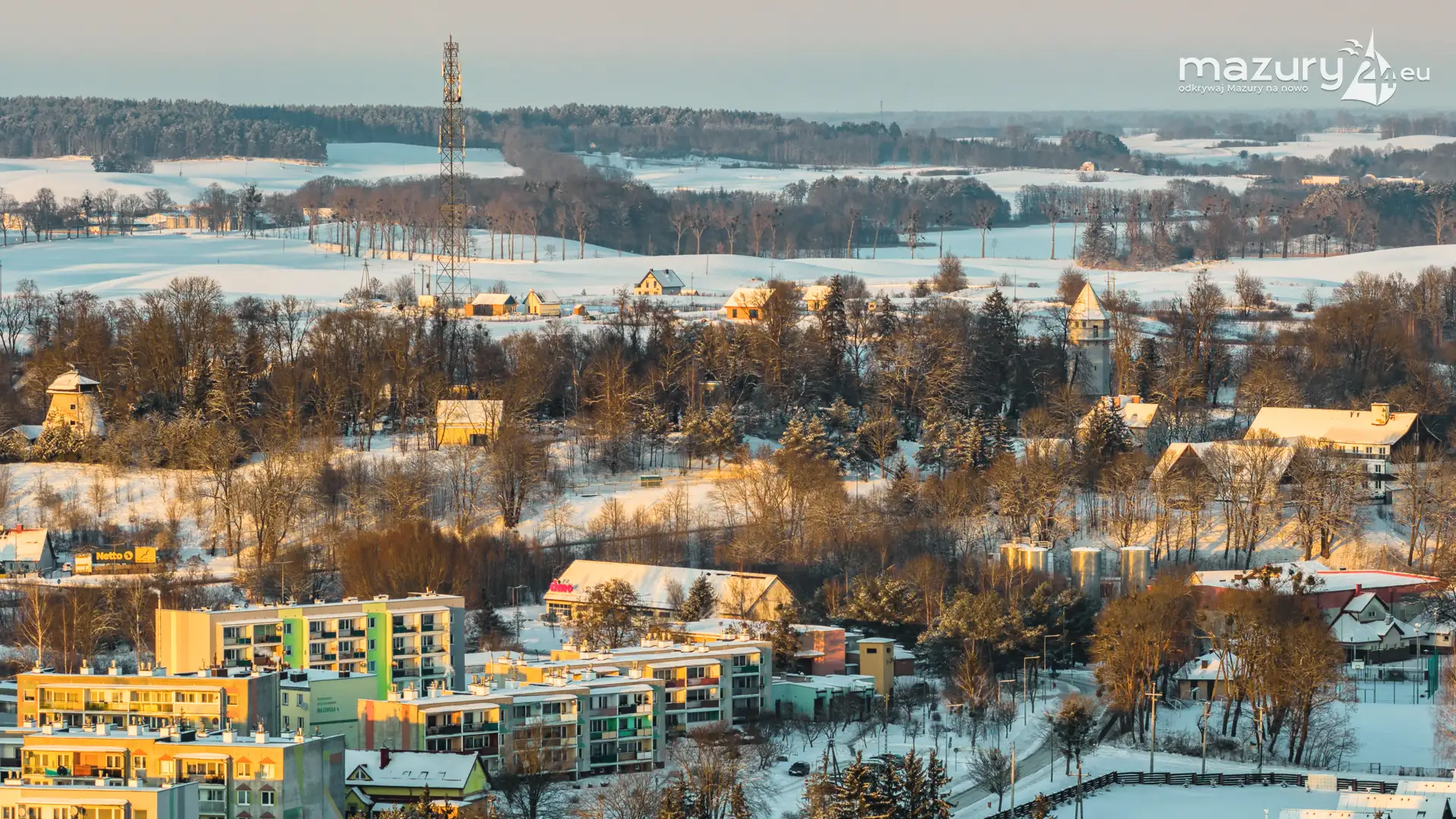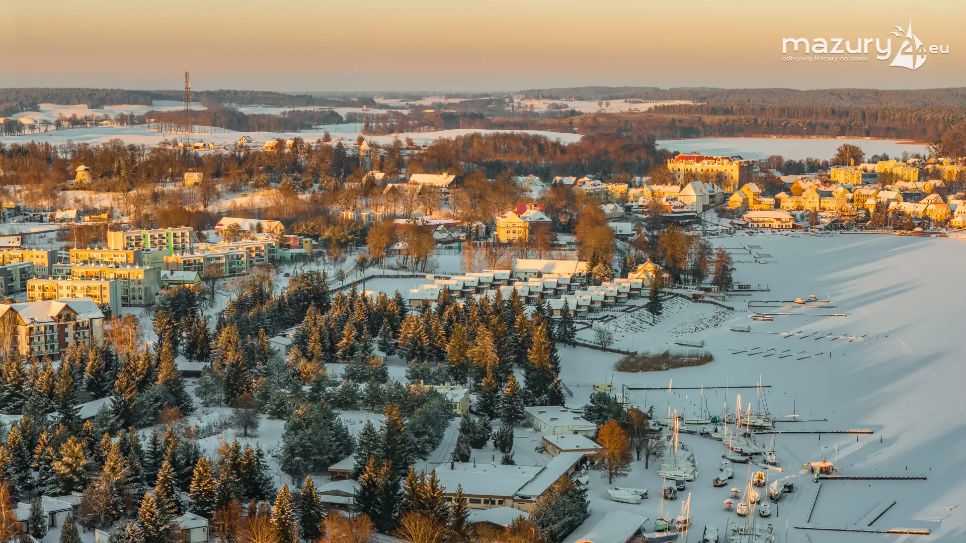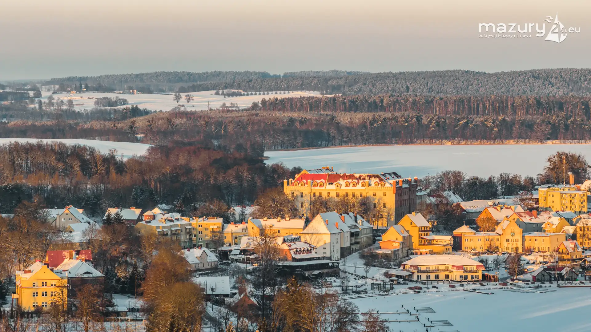 Kilka dni temu udaliśmy się na zdjęcia zachodu słońca do Mikołajek, ale przed samą miejscowością pojawiła się kurtyna z chmur. Cofnęliśmy się do Rynu... a tam piękny, bajkowy, słoneczny i zimowy klimat. Polataliśmy dłużej, niż zwykle, odwiedzając porty na zachodnim brzegu jeziora Ryńskiego, jezioro Ołów, i większą część zabudowy. Tak Ryn wygląda zimą...