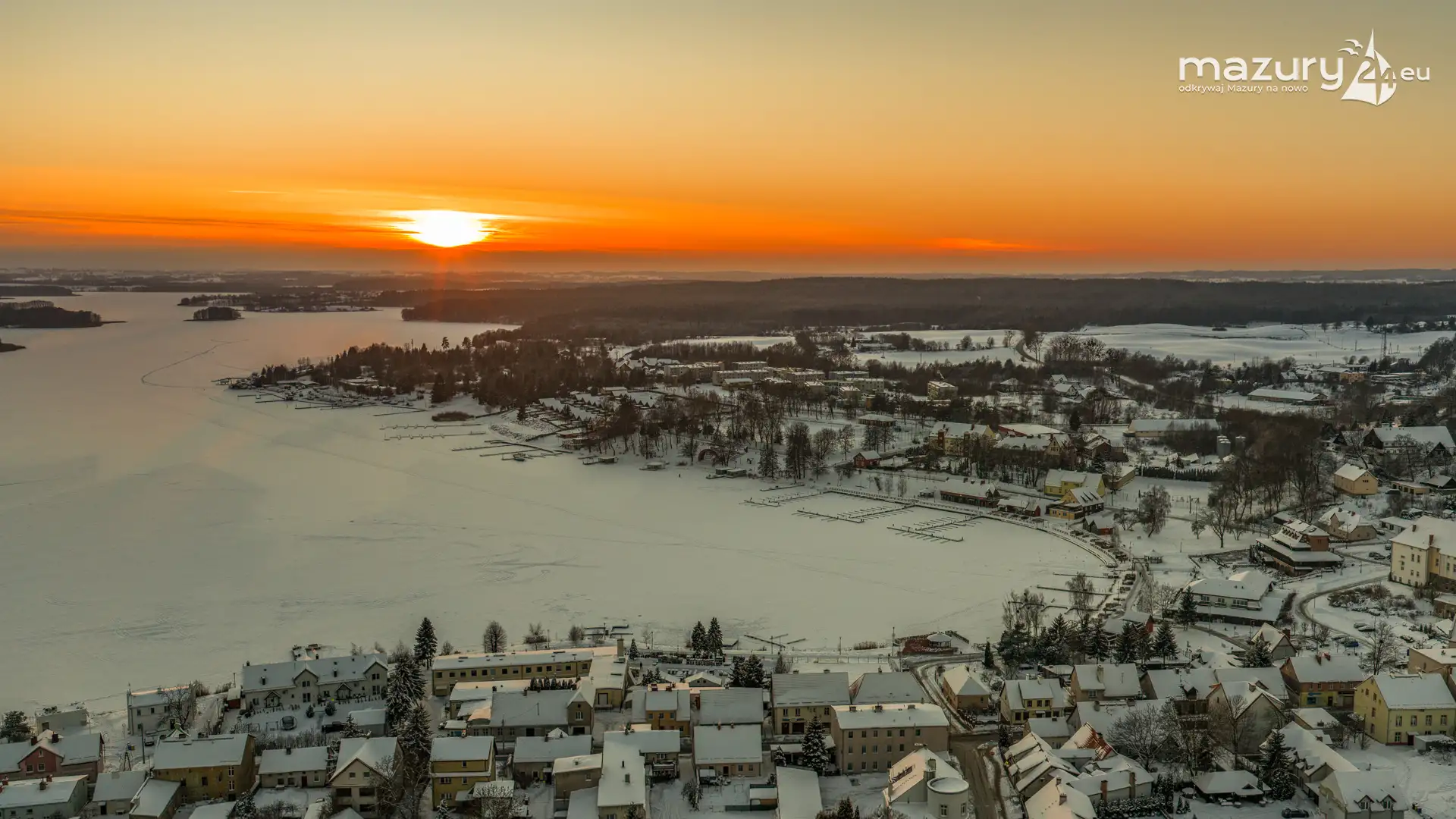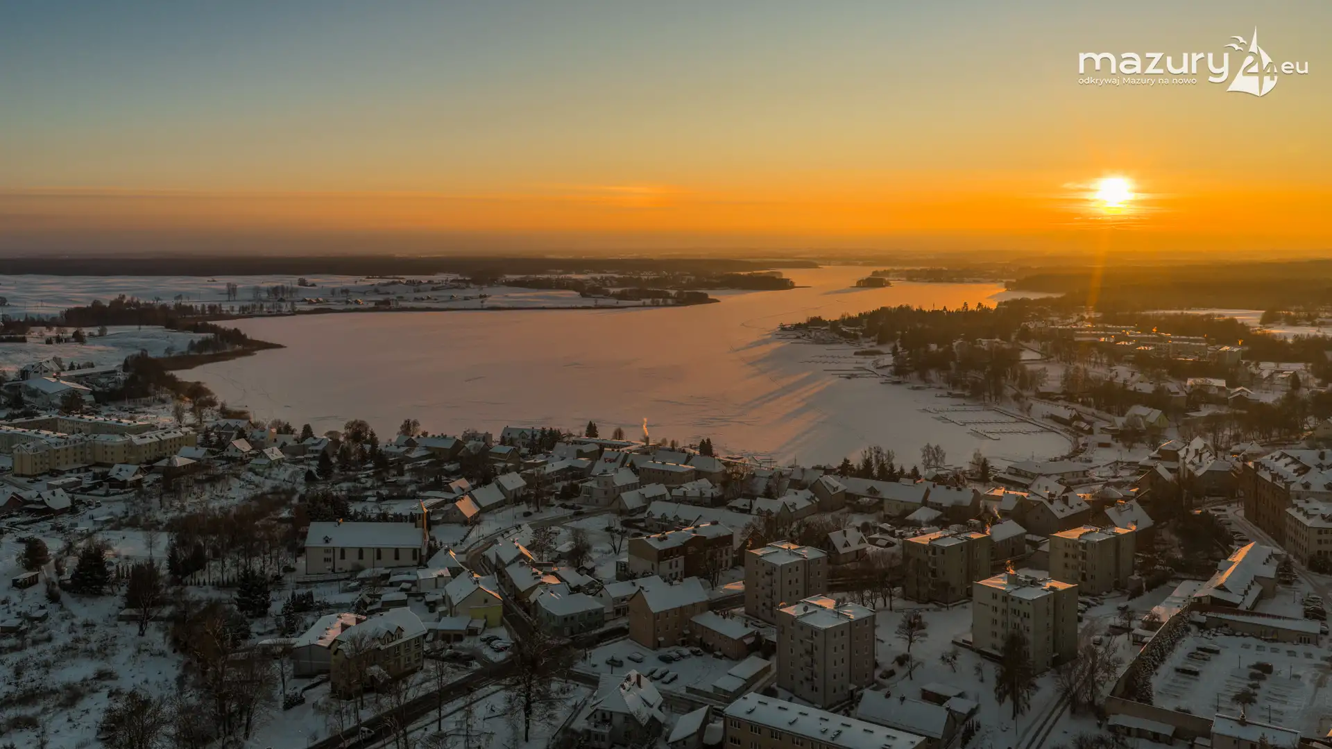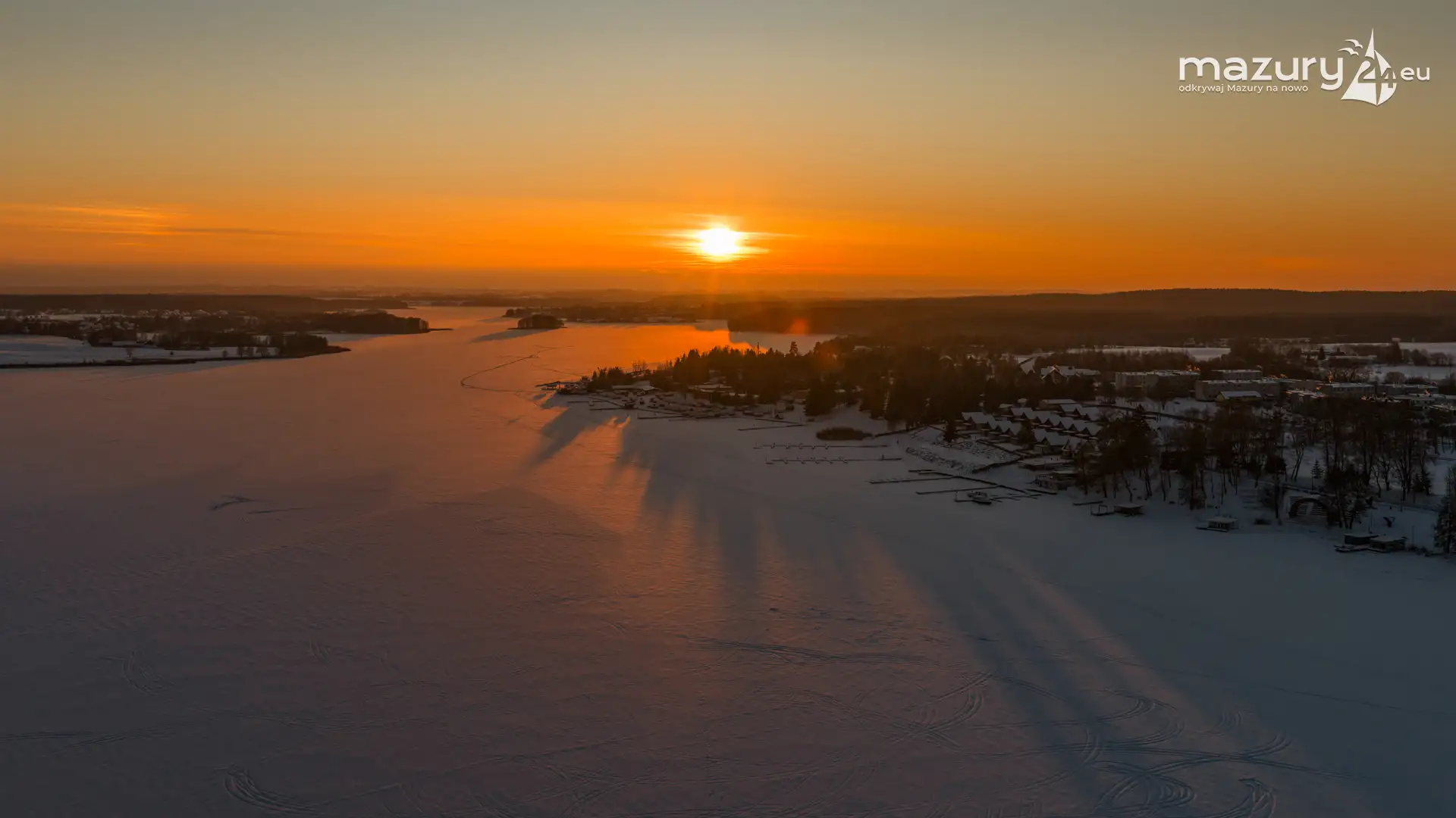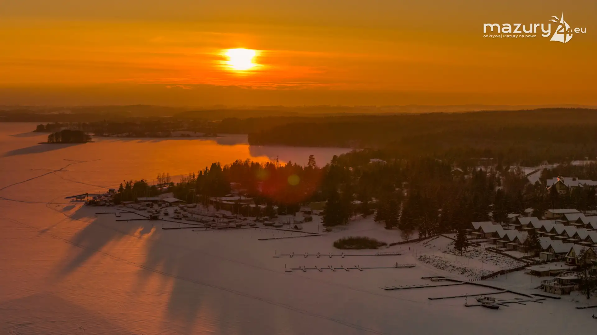Zachód słońca nad jeziorem Ryńskim z drona, luty 2026 r. - zdjęcie 20