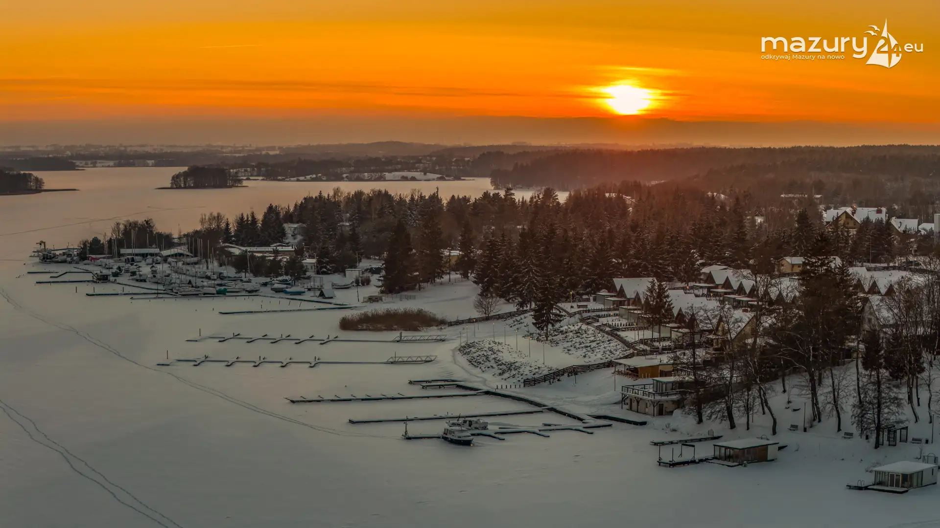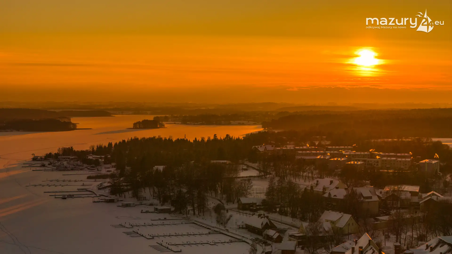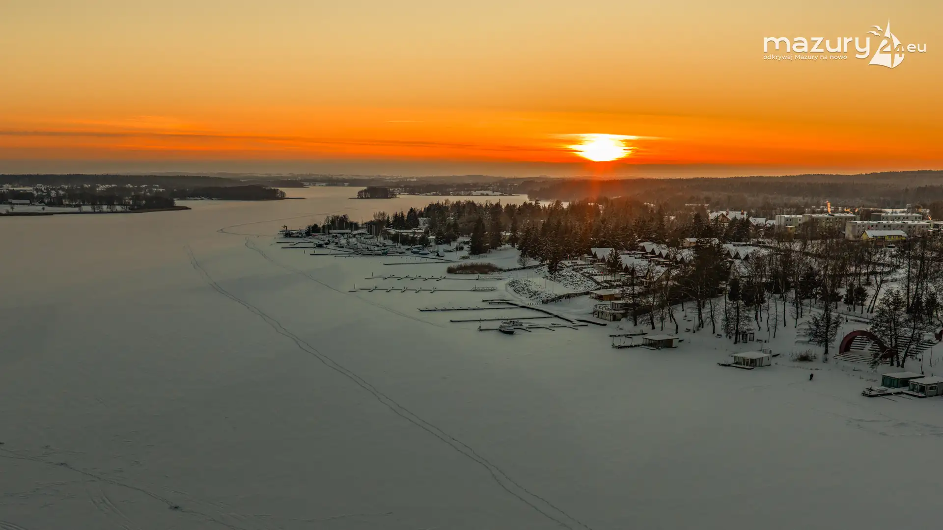 Zachód słońca nad jeziorem Ryńskim z drona, luty 2026 r. - zdjęcie 20