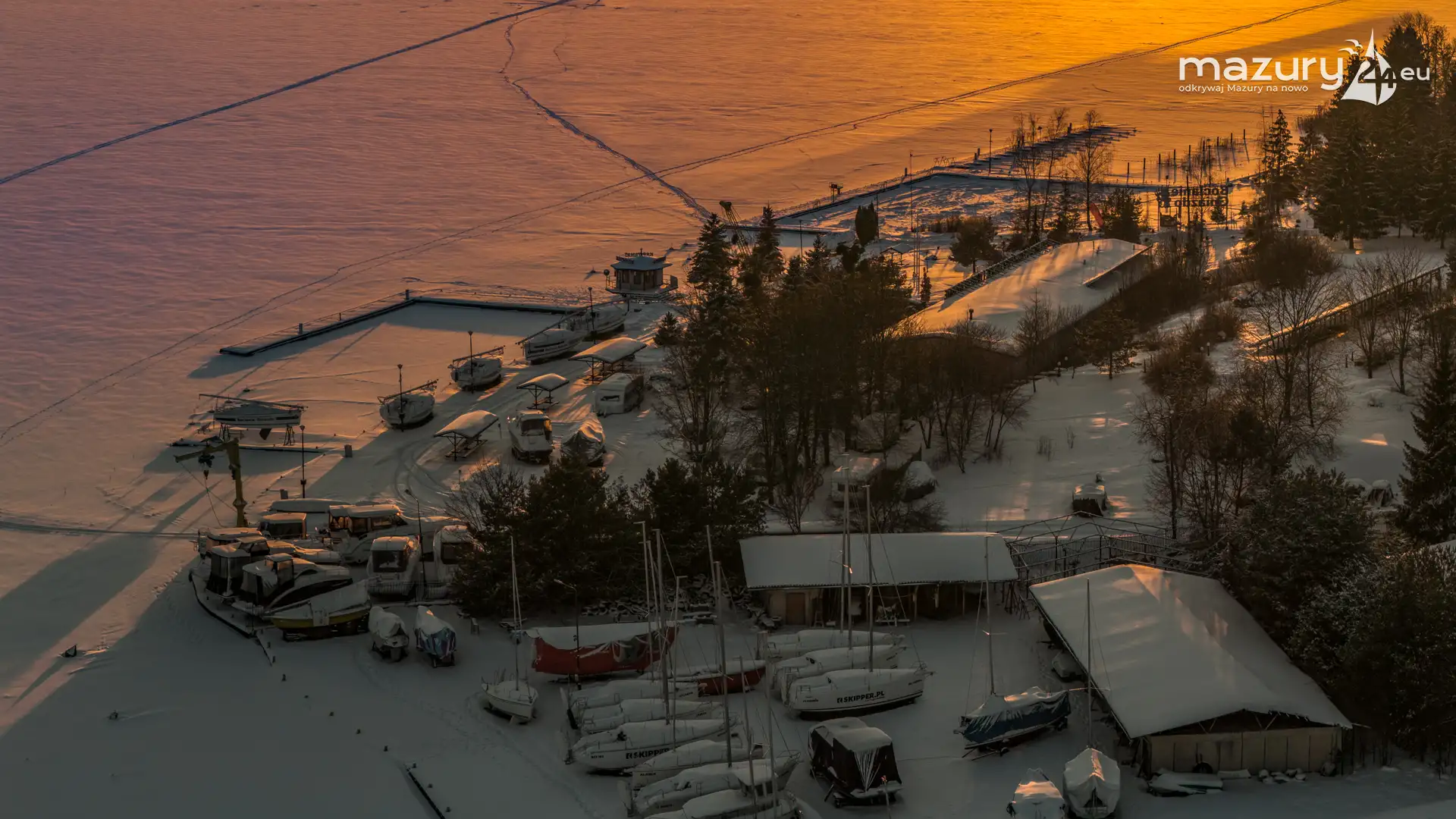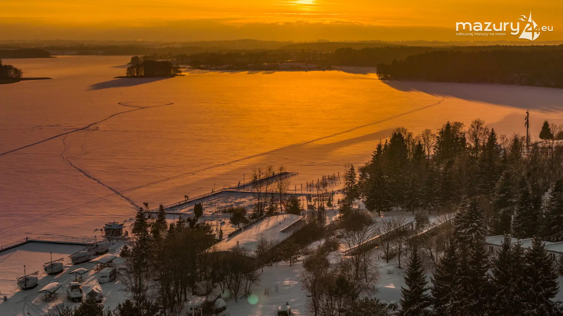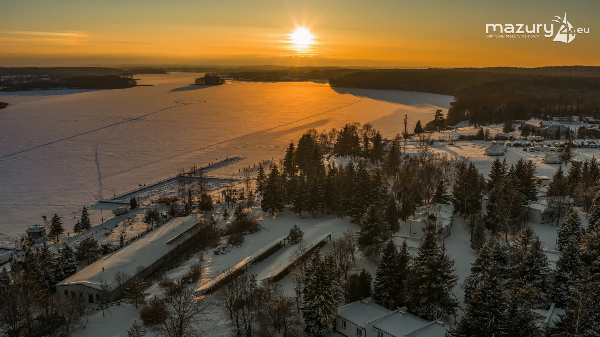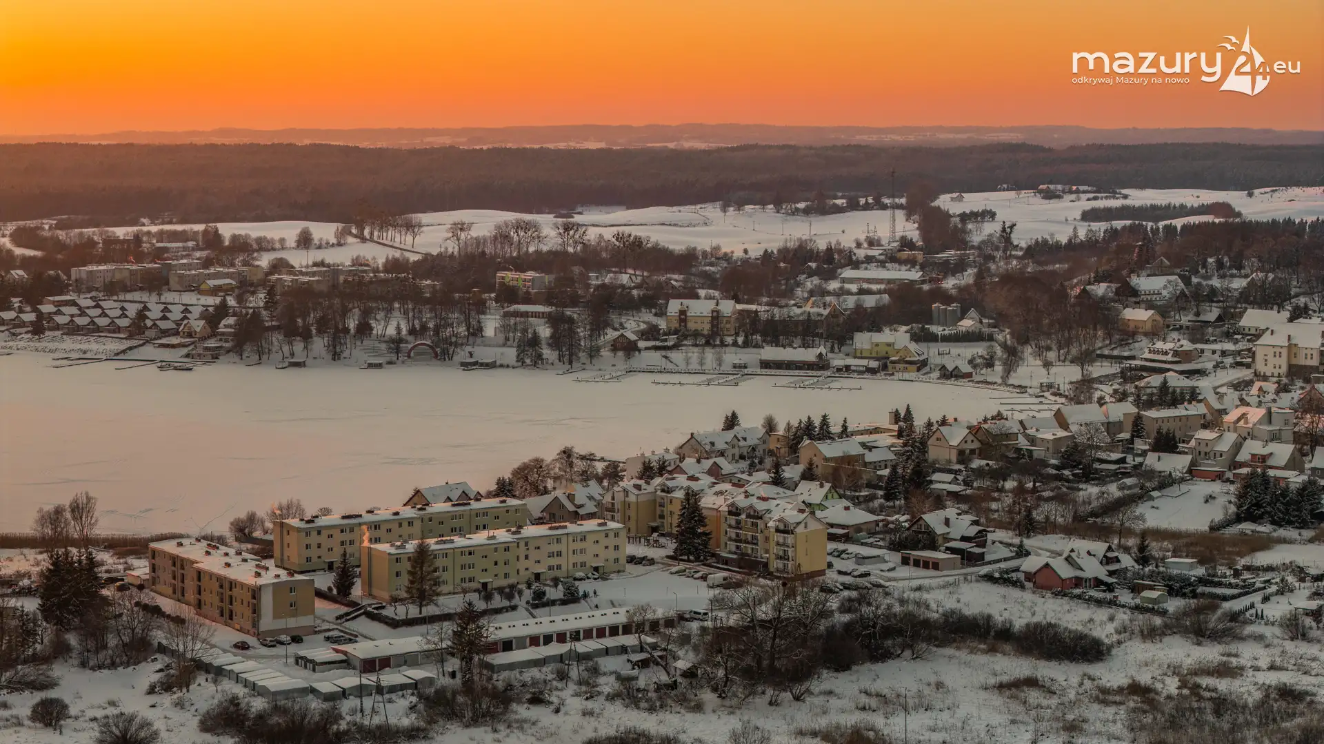 Zachód słońca nad jeziorem Ryńskim z drona, luty 2026 r. - zdjęcie 20
