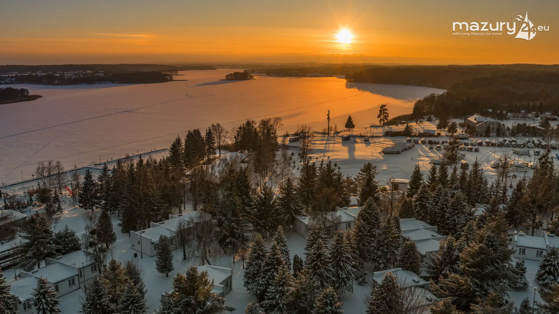 Zachód słońca nad jeziorem Ryńskim z drona, luty 2026 r. - zdjęcie 23