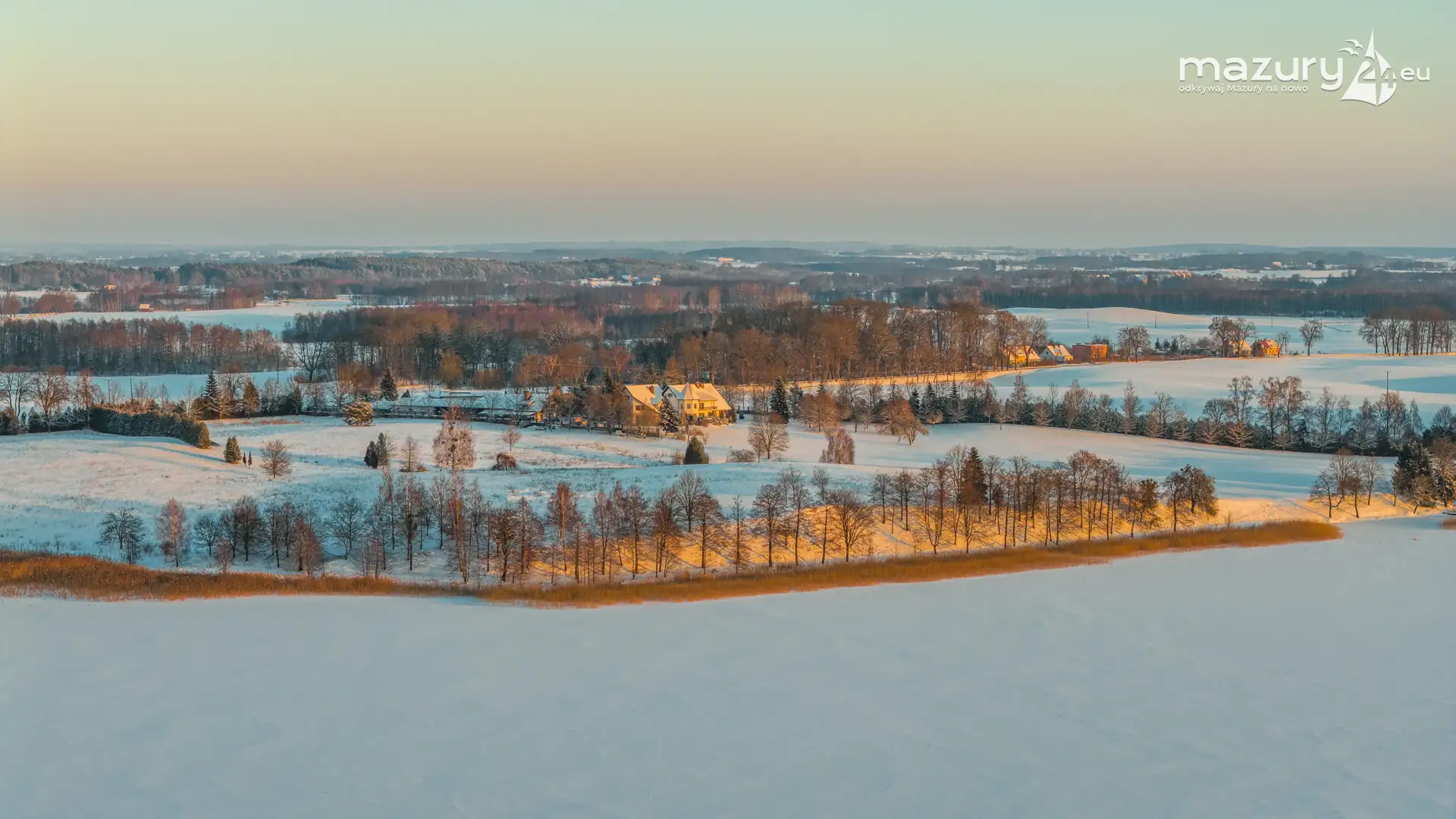 Zachód słońca nad jeziorem Ryńskim z drona, luty 2026 r. - zdjęcie 35