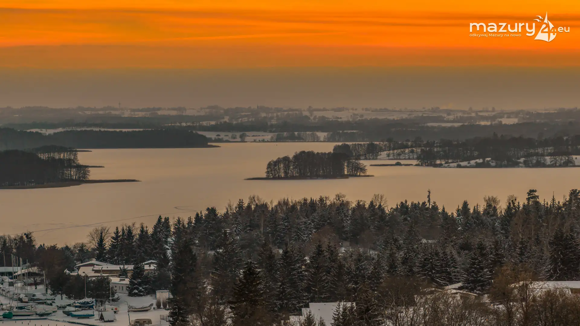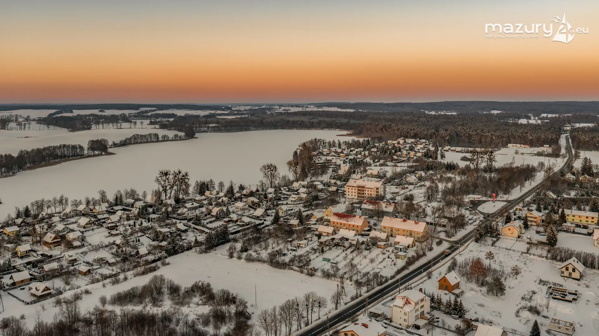 Zachód słońca nad jeziorem Ryńskim z drona, luty 2026 r. - zdjęcie 39