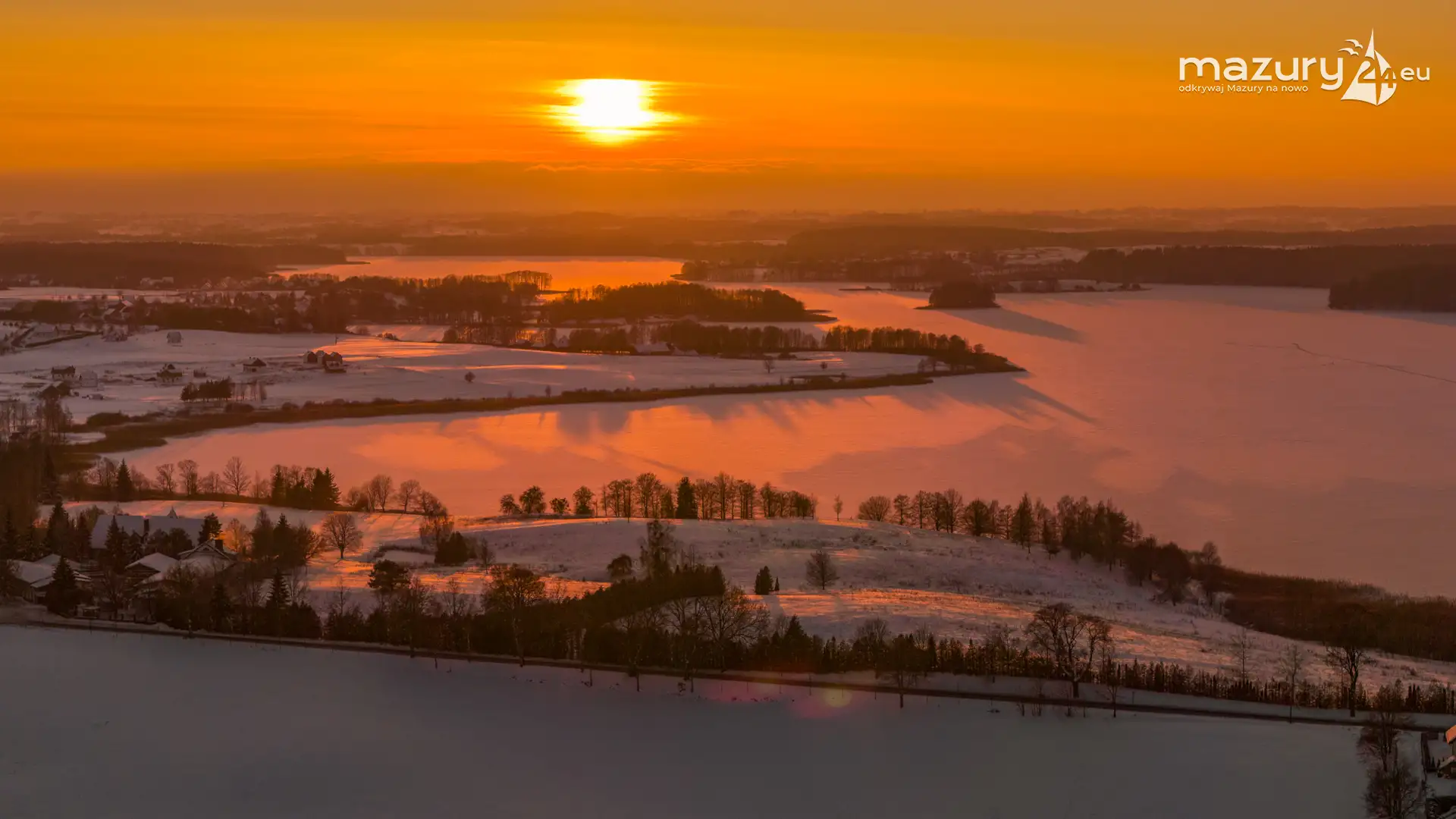 Zachód słońca nad jeziorem Ryńskim z drona, luty 2026 r. - zdjęcie 16