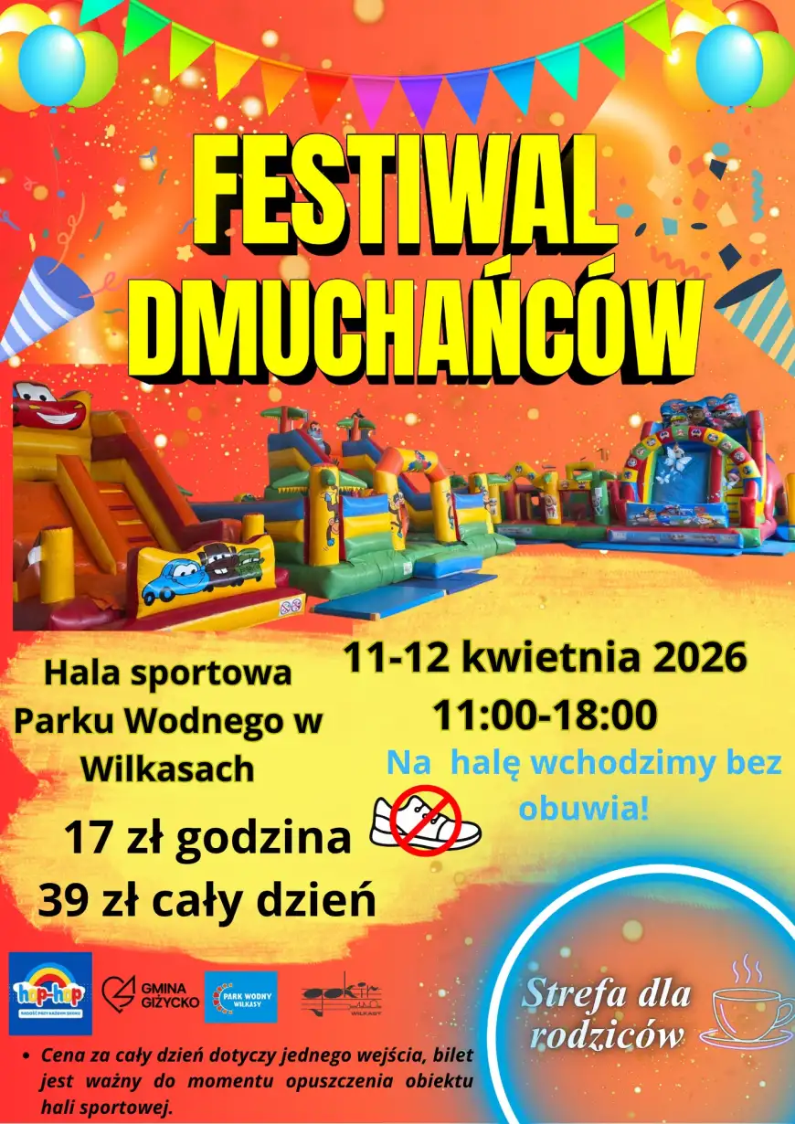 W dniach 11–12 kwietnia 2026 r. hala sportowa Parku Wodnego w Wilkasach zamieni się w kolorową przestrzeń pełną dobrej zabawy – wszystko za sprawą Festiwalu Dmuchańców, który wraca do Wilkas. To doskonała propozycja na rodzinny weekend, niezależnie od pogody.